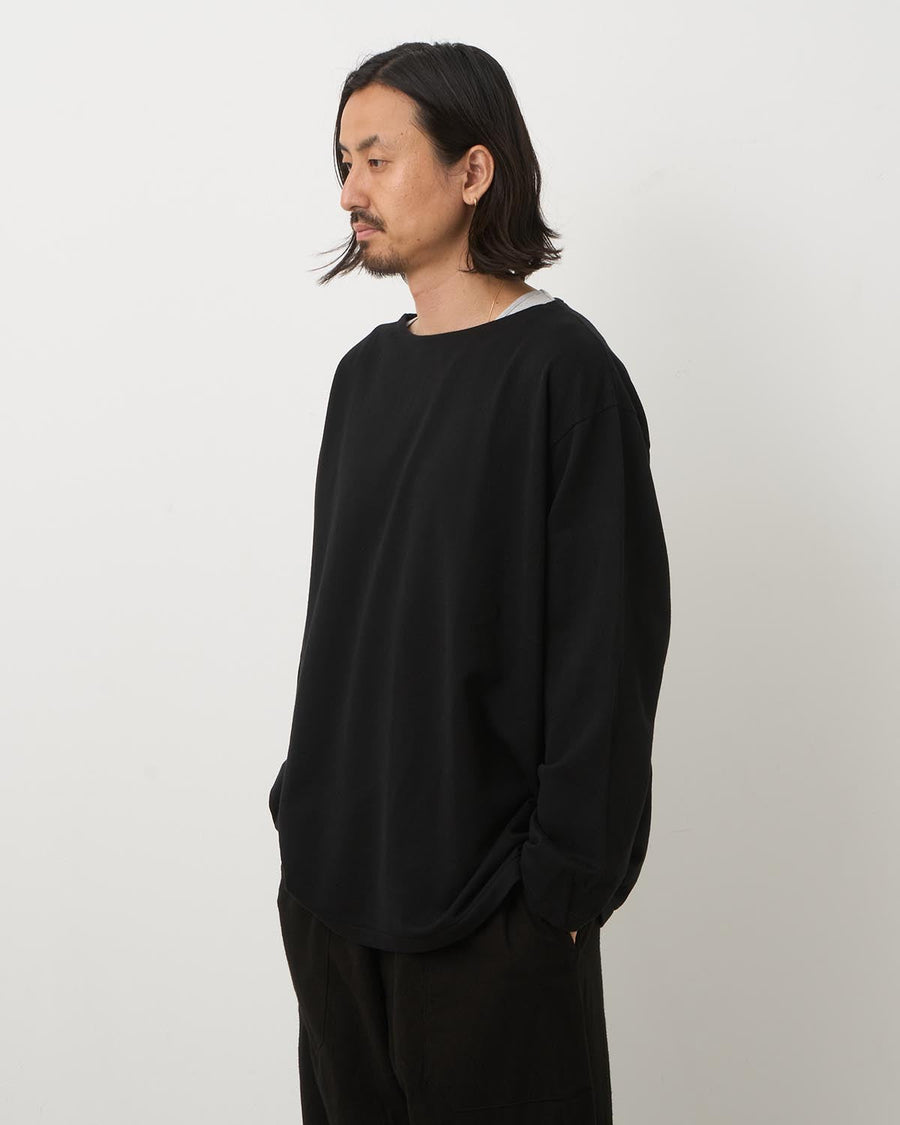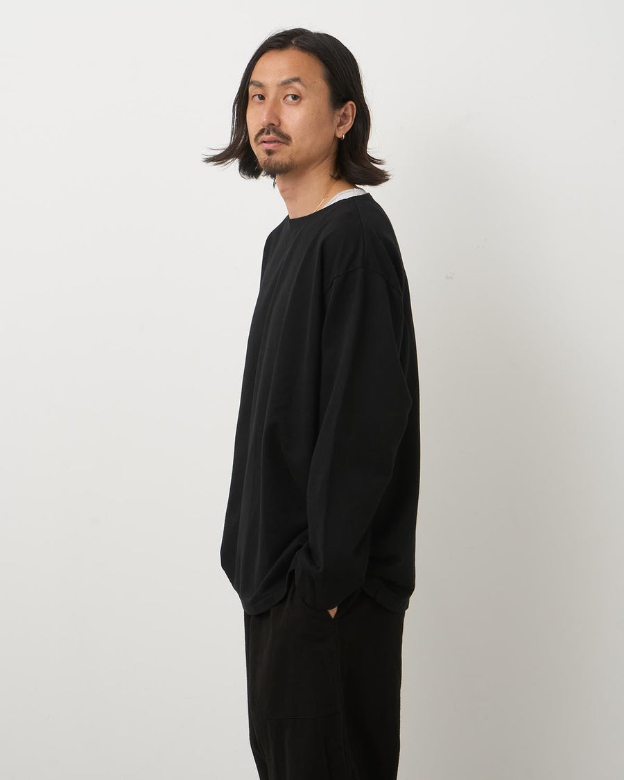 乾いた質感のコットンインレー素材を使用したロングスリーブカットソーです。