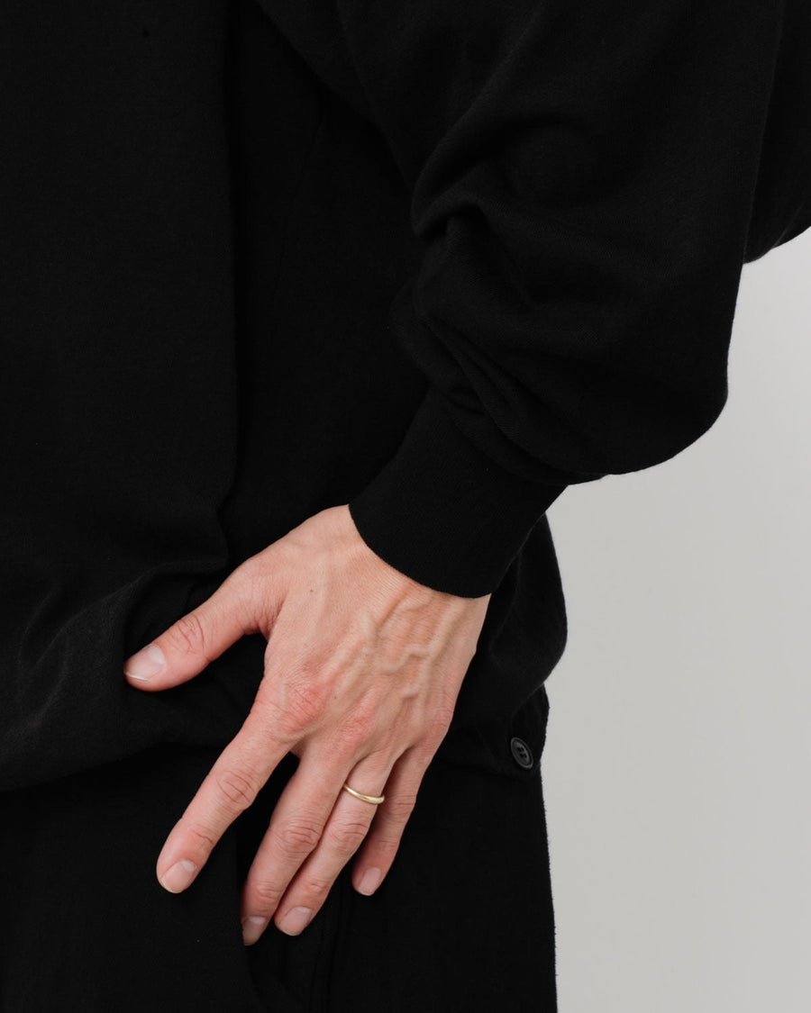 襟元の開閉によって印象を変えることができ、きちんとした着こなしからラフなスタイルまで幅広く対応する一着です。