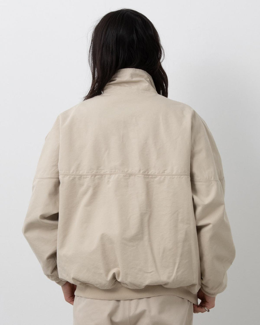 90年代を彷彿とさせるキャップショルダーのデザインを取り入れ、トラックジャケットのような軽快な感覚で着用できる一着に仕上げています。
