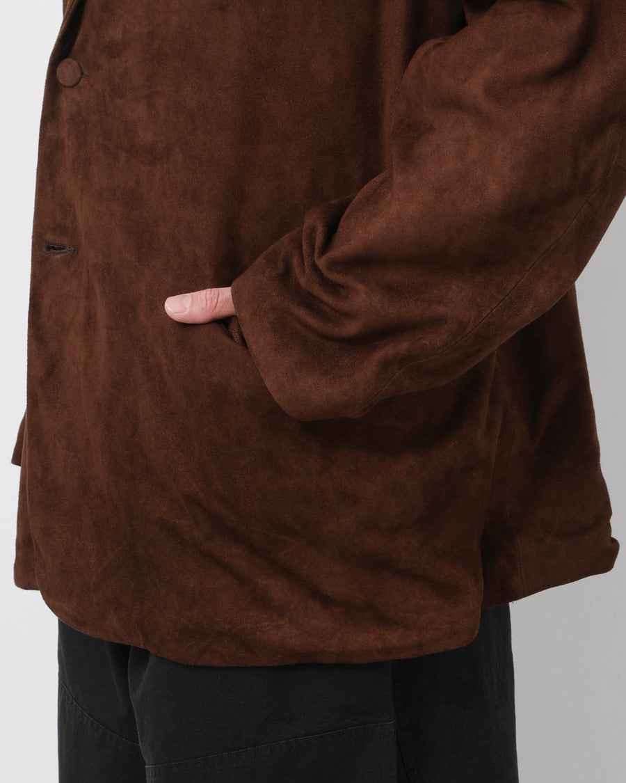 柔らかくしなやかな羊革スエードで仕立てたジャケットです。