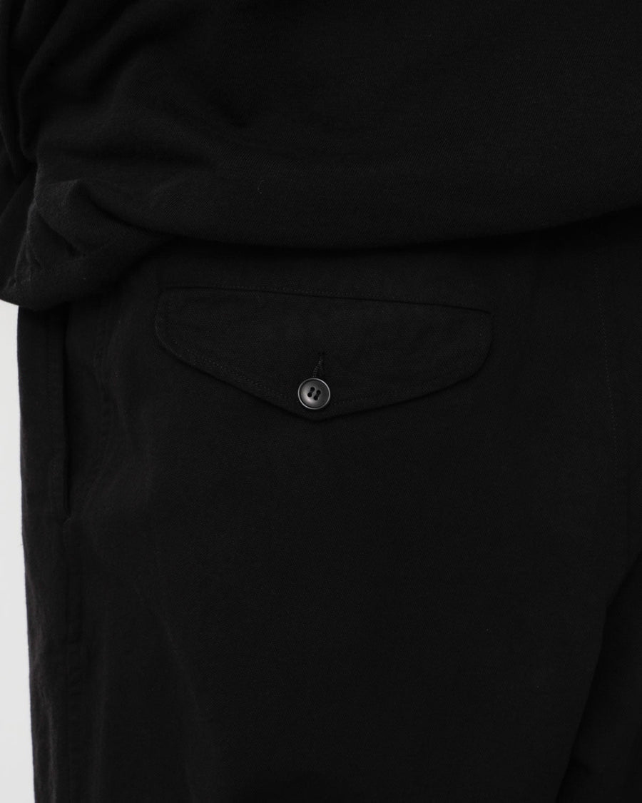 程よいボリューム感を持たせつつ、膝から裾にかけてテーパードしたシルエットが特徴の一本です。