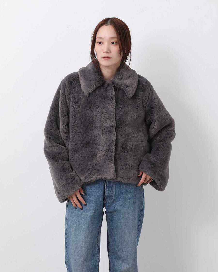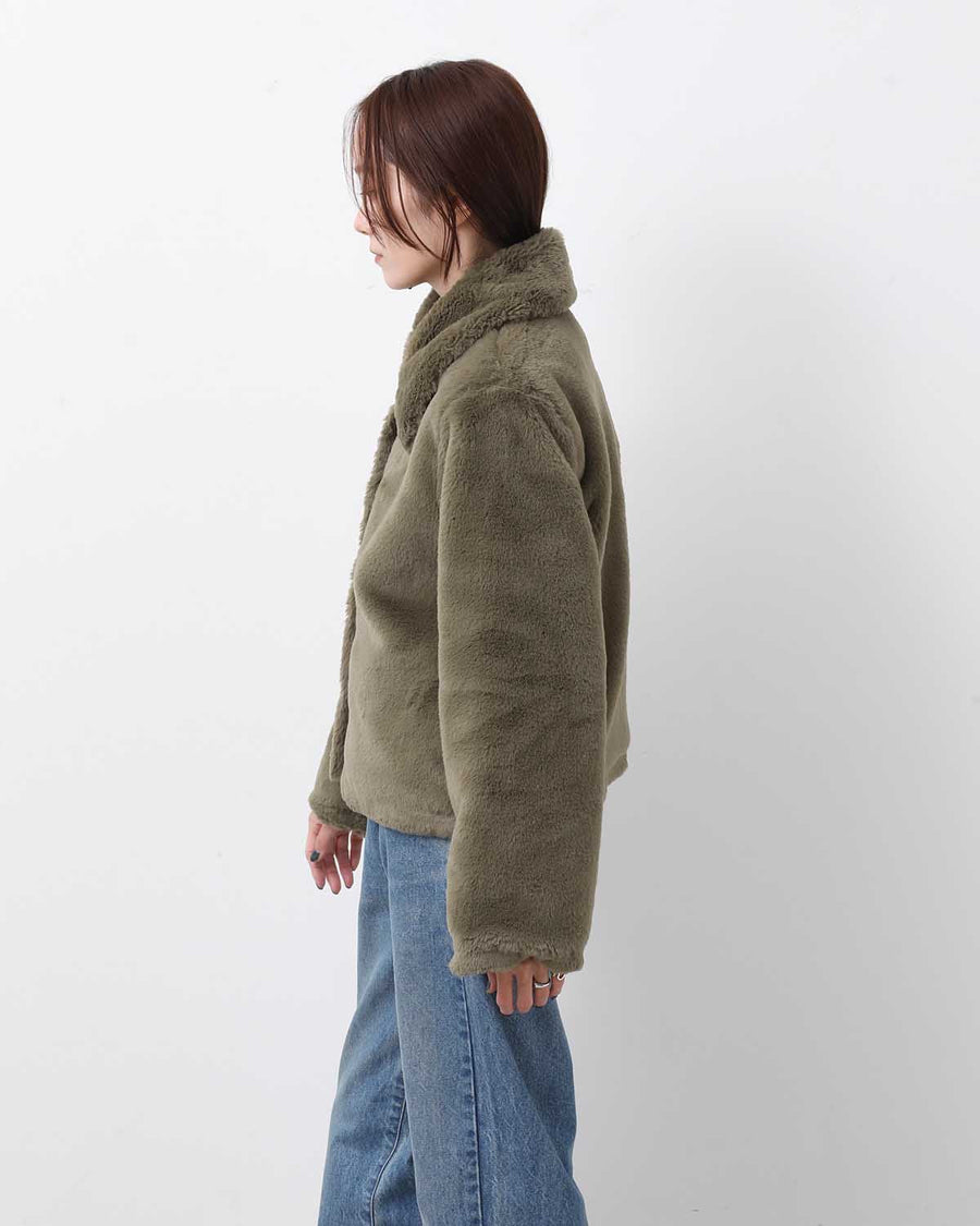 全体的にボリューム感がありエレガントな印象のフラッフィージャケットです。