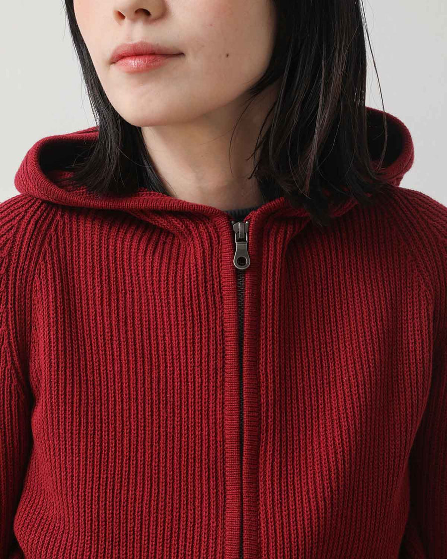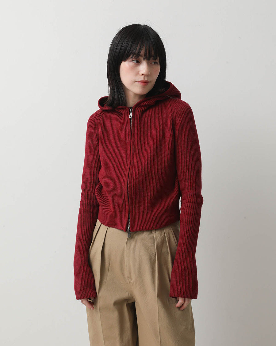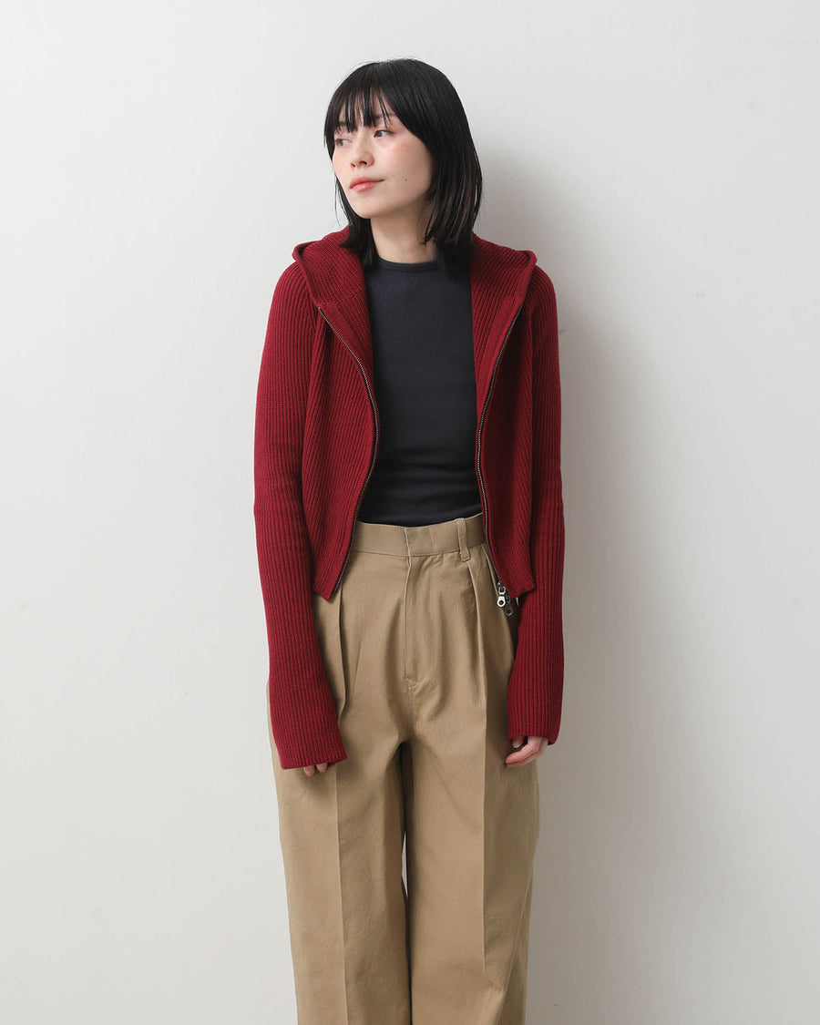 コットン100%のナチュラル糸を使用した、程よい厚みある生地感のフロントダブルジッパーニットフーディーです。