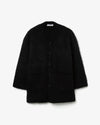 シンプルなブラックカラーで幅広いスタイリングに合わせやすく、リラックス感のあるシルエットが魅力です。