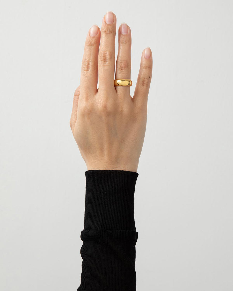 幅広いバンドリングでありながら、甲丸デザインが女性らしい印象を与えます。