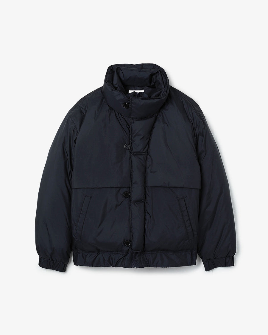 たっぷりと中綿を封入しながらも、ボリュームを抑えたスマートなフォルムに仕上げた「DOWN JACKET」です。