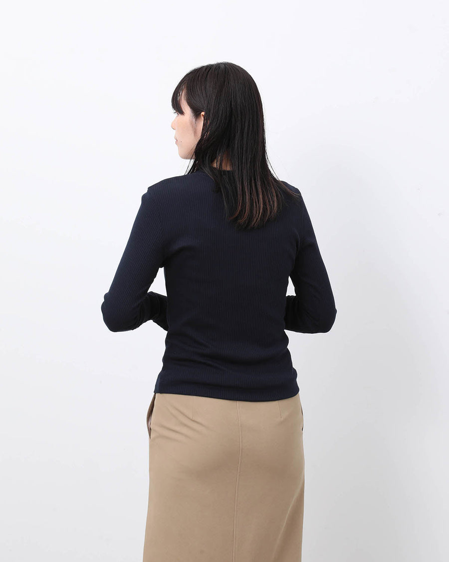 体に沿うタイトなフィットで、すっきりとした印象の着用感です。