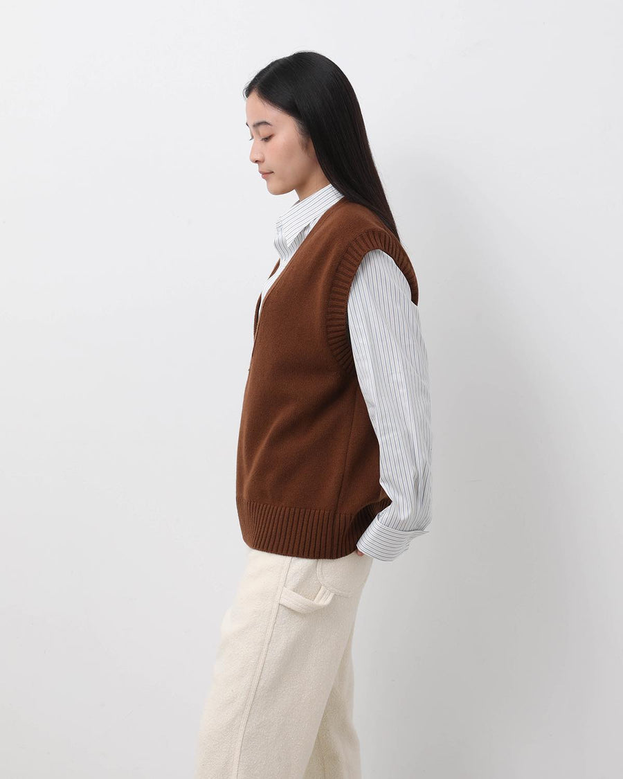 ざっくりとした深いVネックが特徴で、シャツやカットソーとのレイヤードを楽しむことができます。