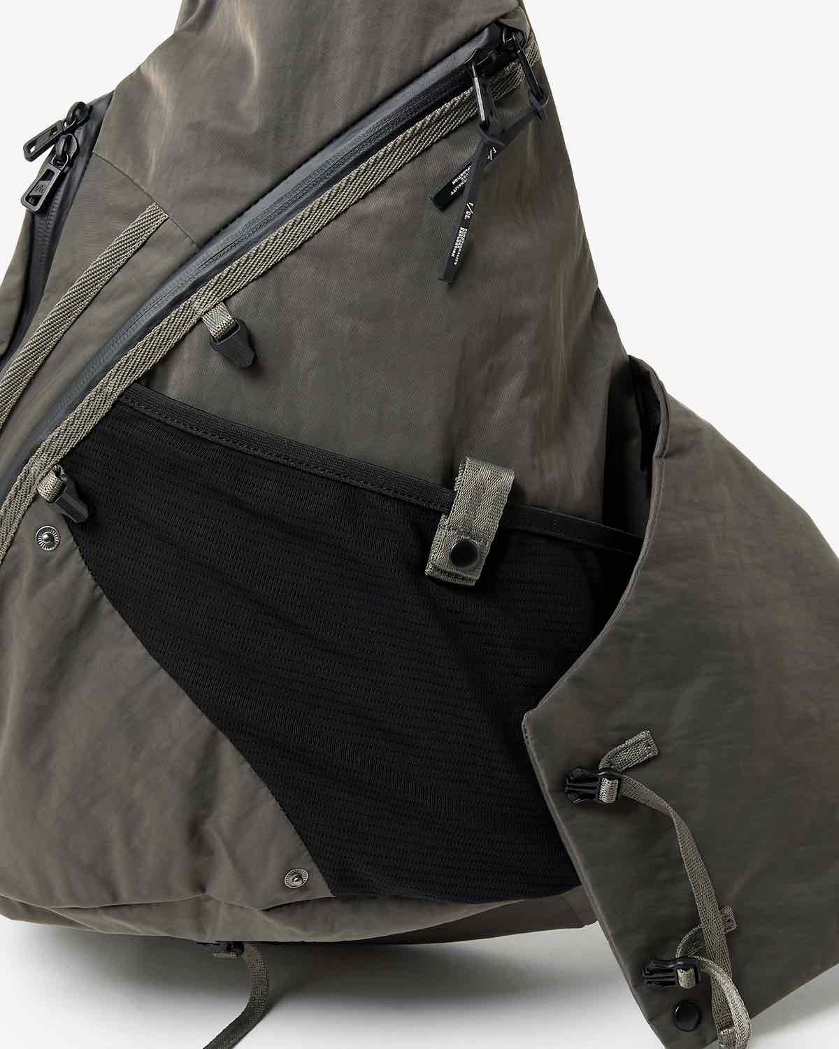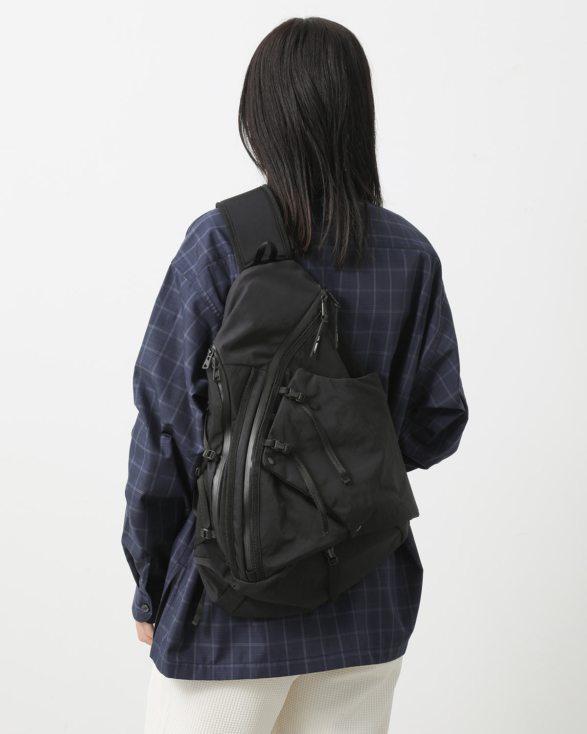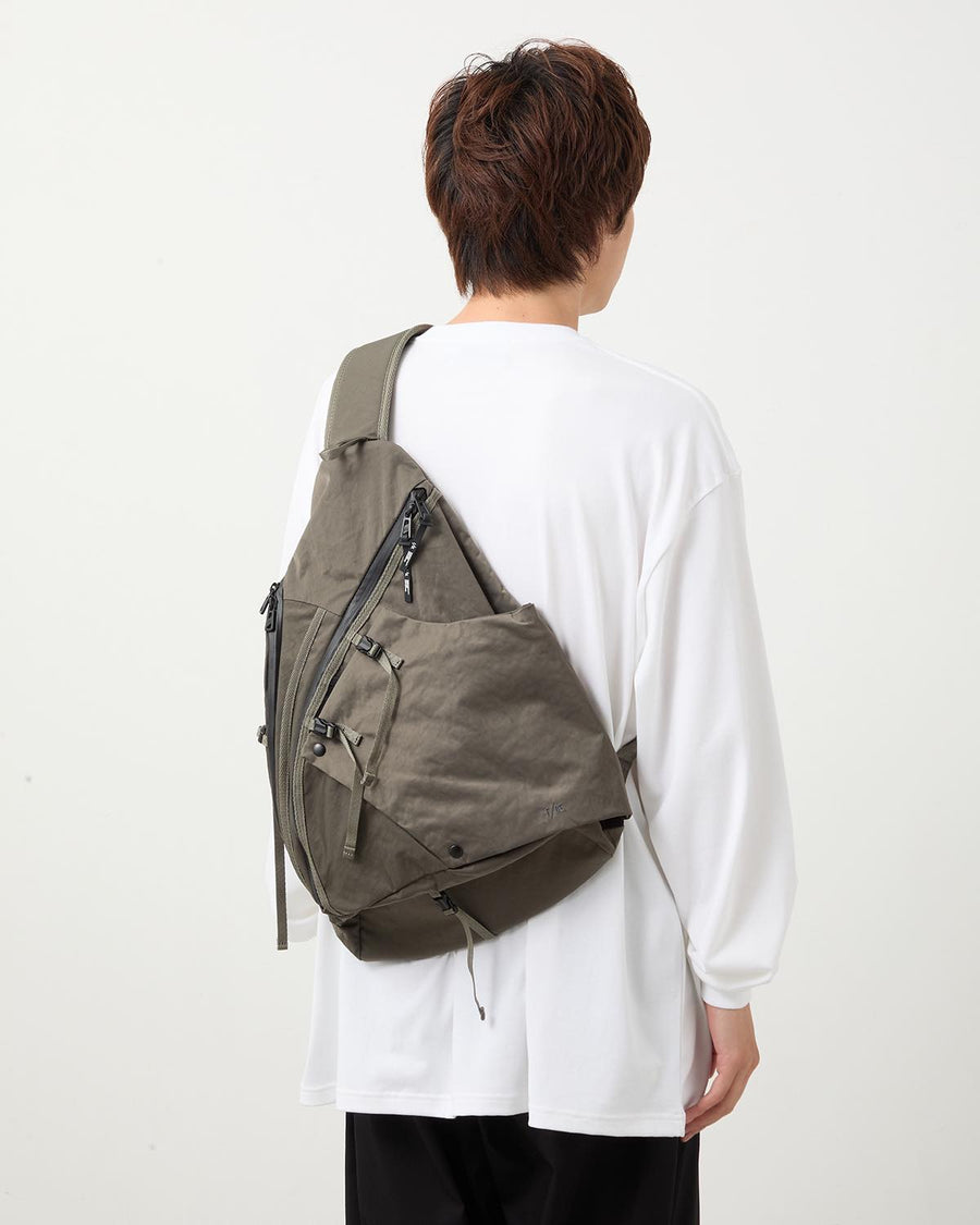 本体には、水洗いを掛けシワ感を出したナイロン生地を使用した「3 POINTS SLINGER BAG」です。