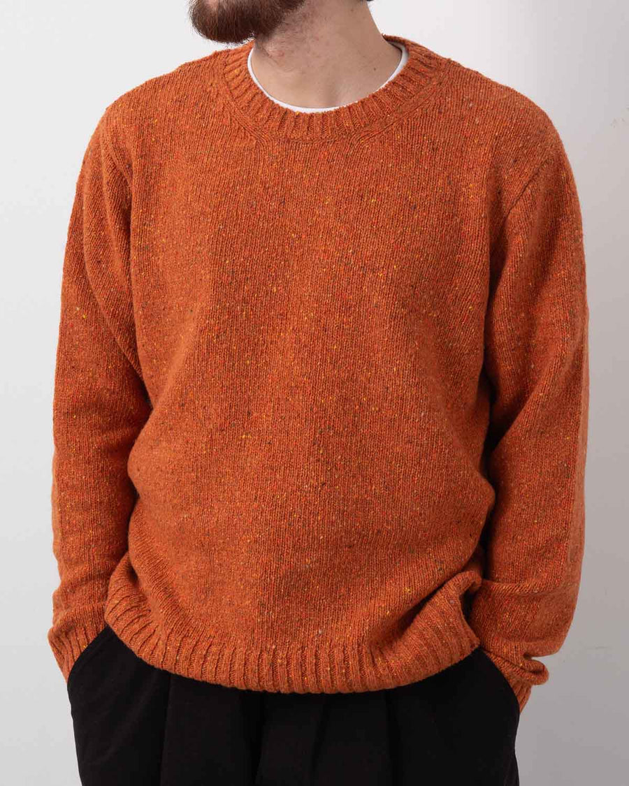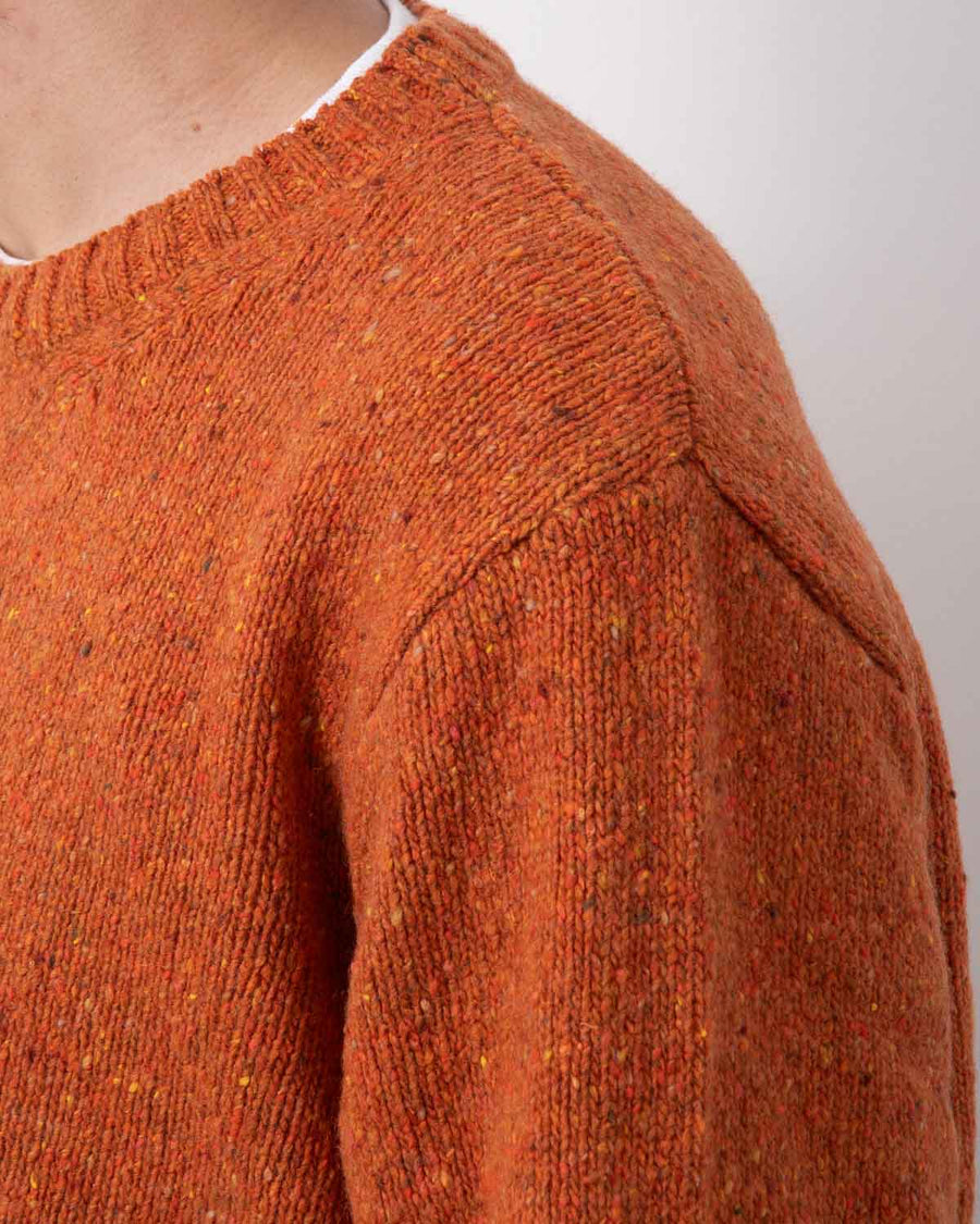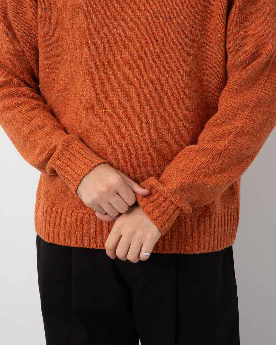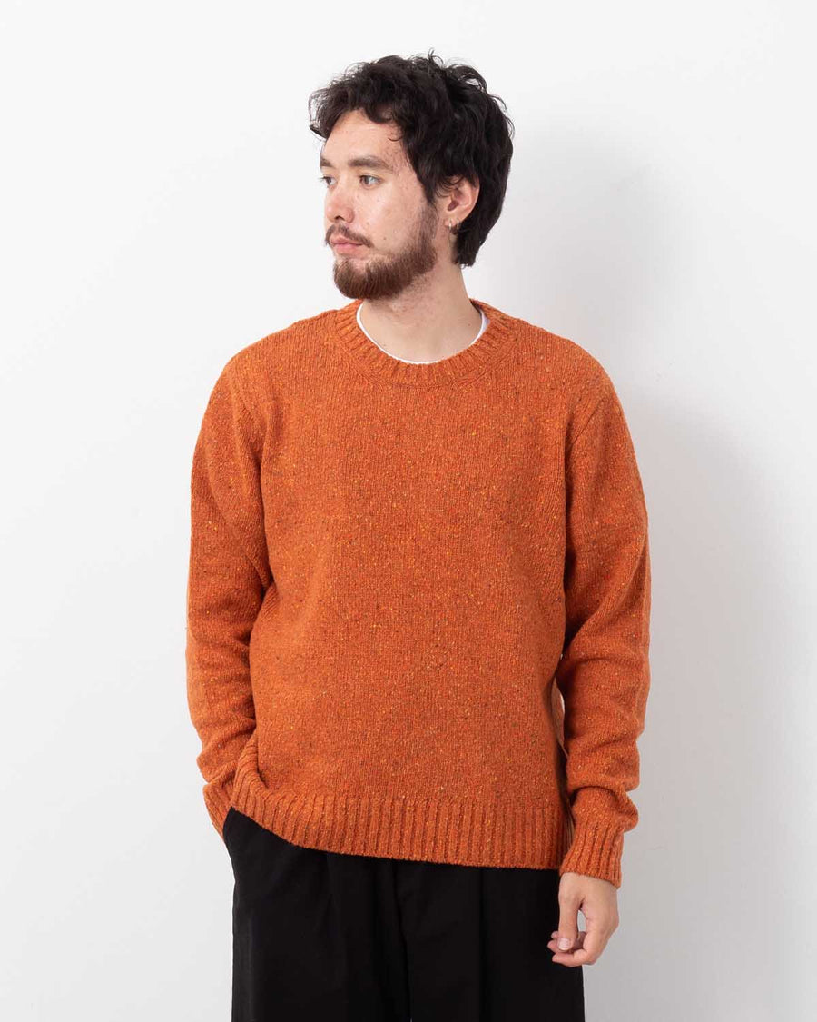 シンプルなシングルジャージー編みのクルーネックプルオーバーニットです。