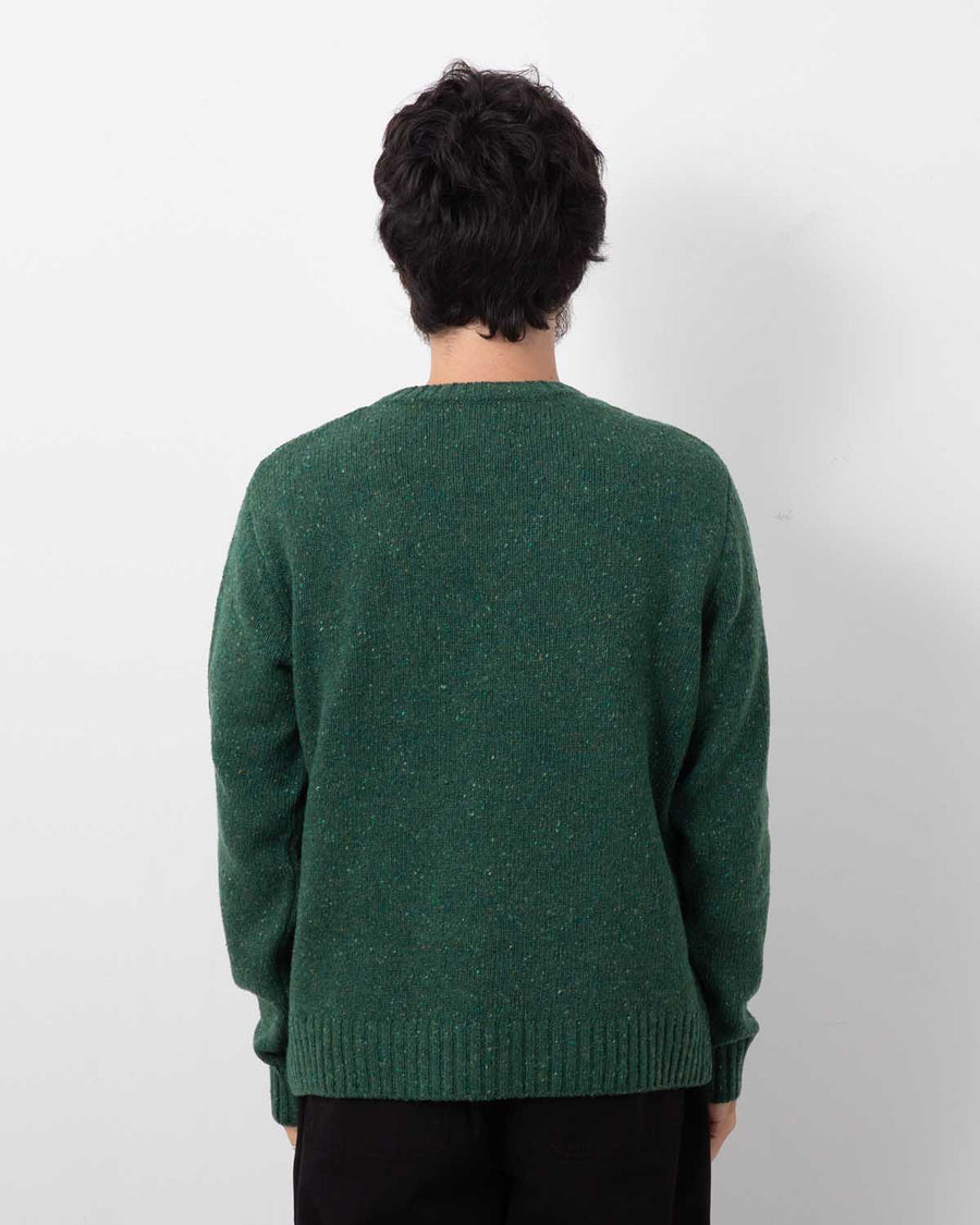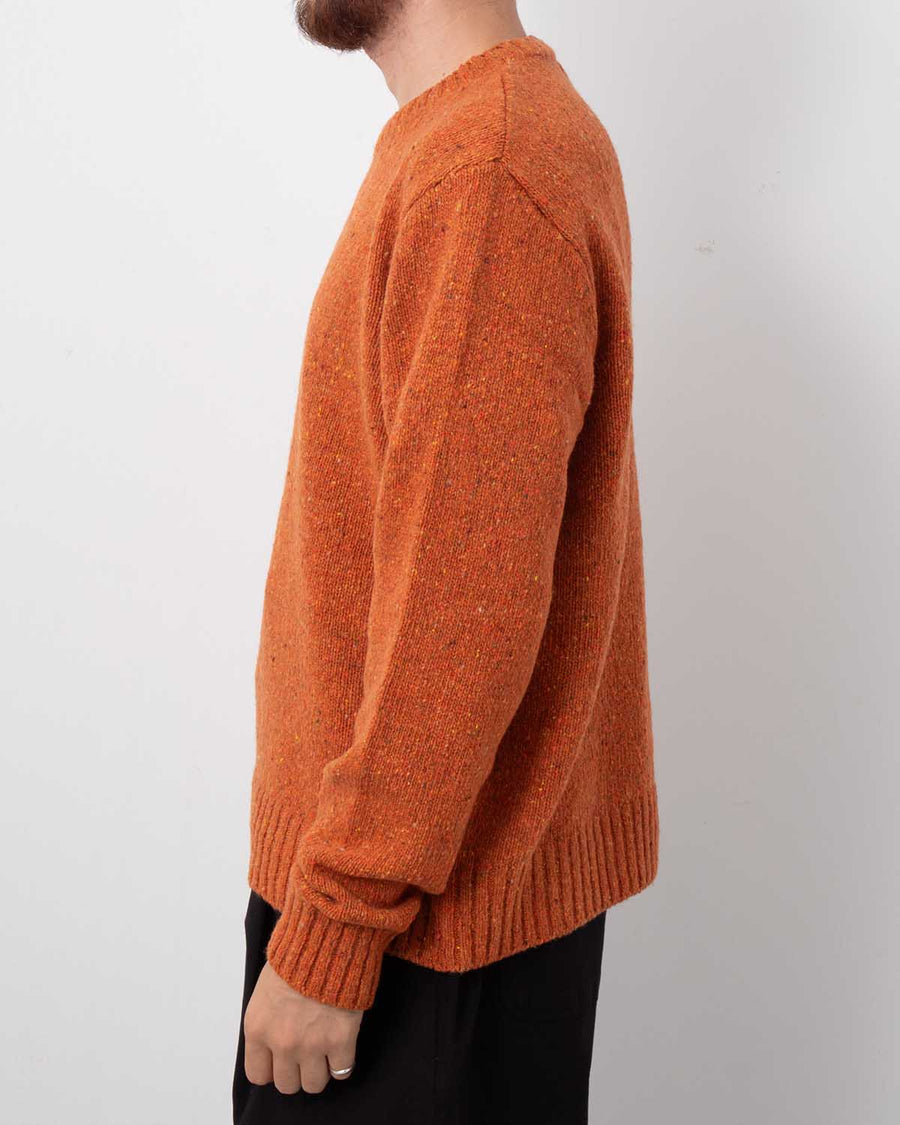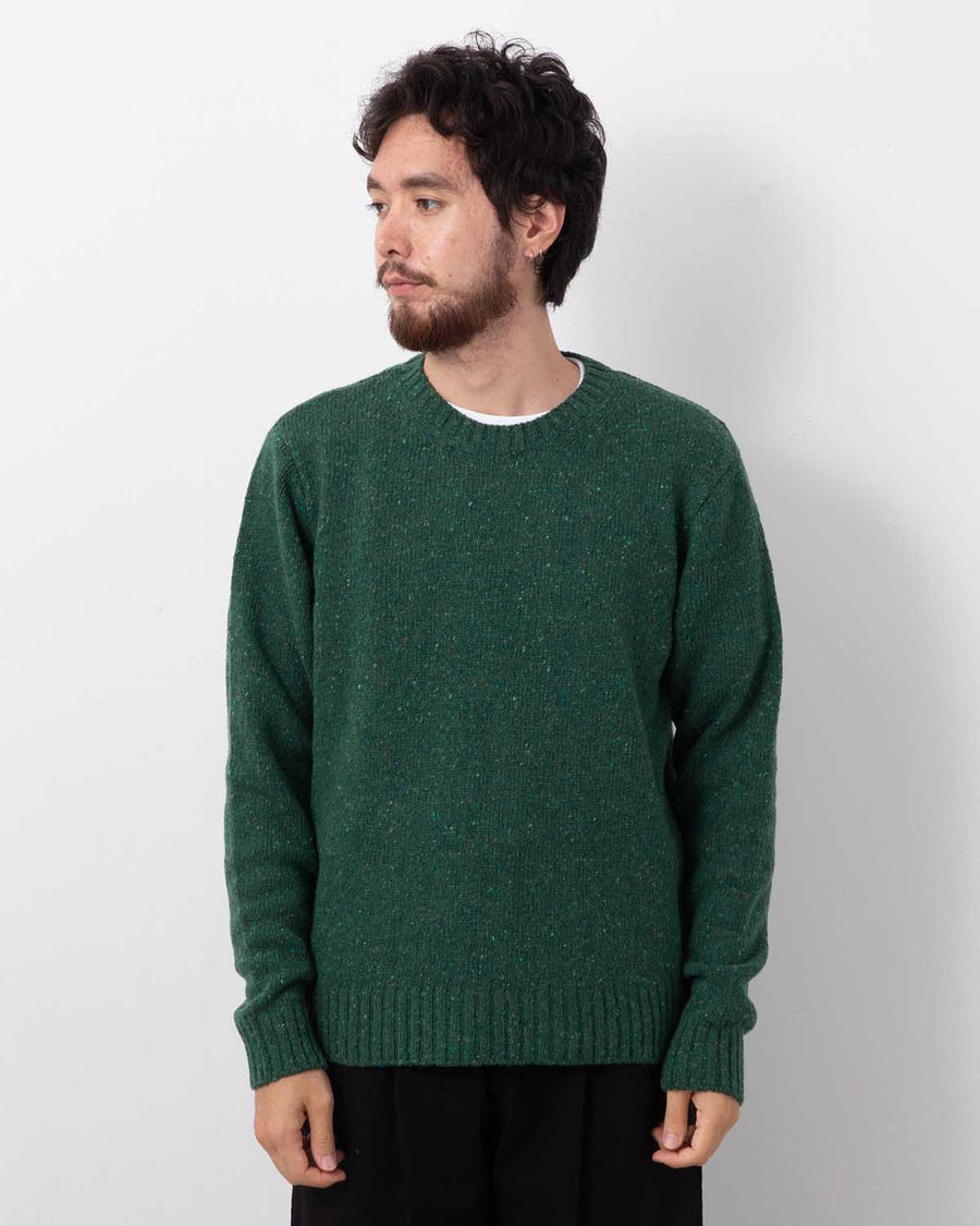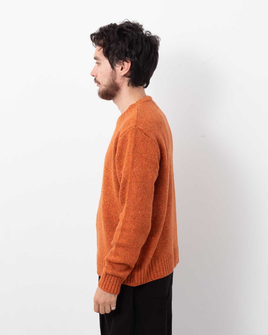 シンプルなシングルジャージー編みのクルーネックプルオーバーニットです。