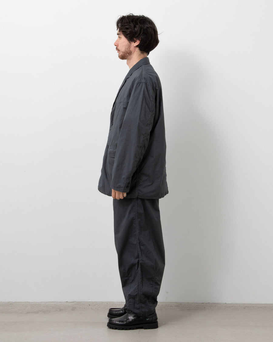 縫製には太番手の糸を使用し、巻き縫いによって仕立てられており、製品染めによって生まれる縮みによるアタリや、一点ごとに異なる独特の風合いも魅力のひとつ。素材と加工の良さを存分に活かした、存在感ある一着です。