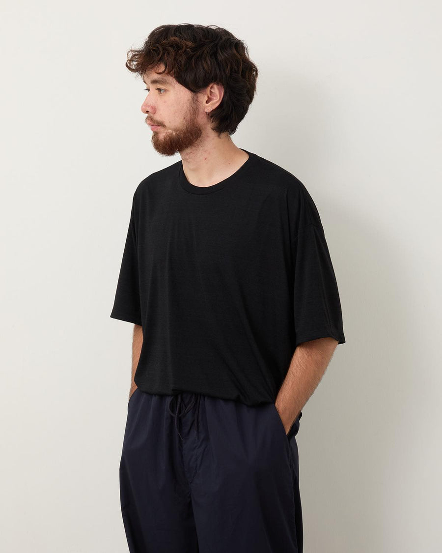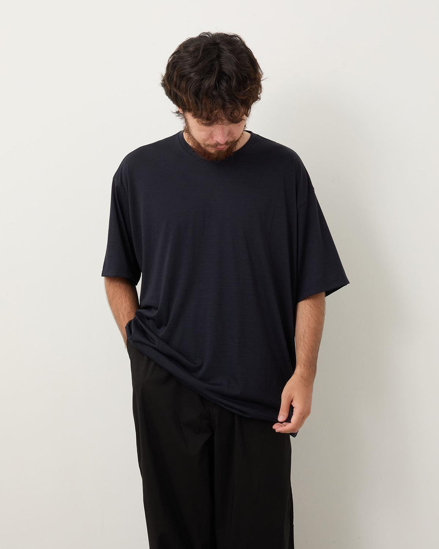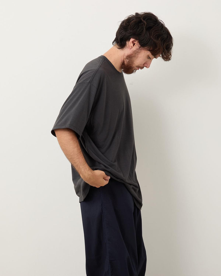 たっぷりとゆとりのあるオーバーサイズシルエットでバインダーネックのショートスリーブTシャツです。