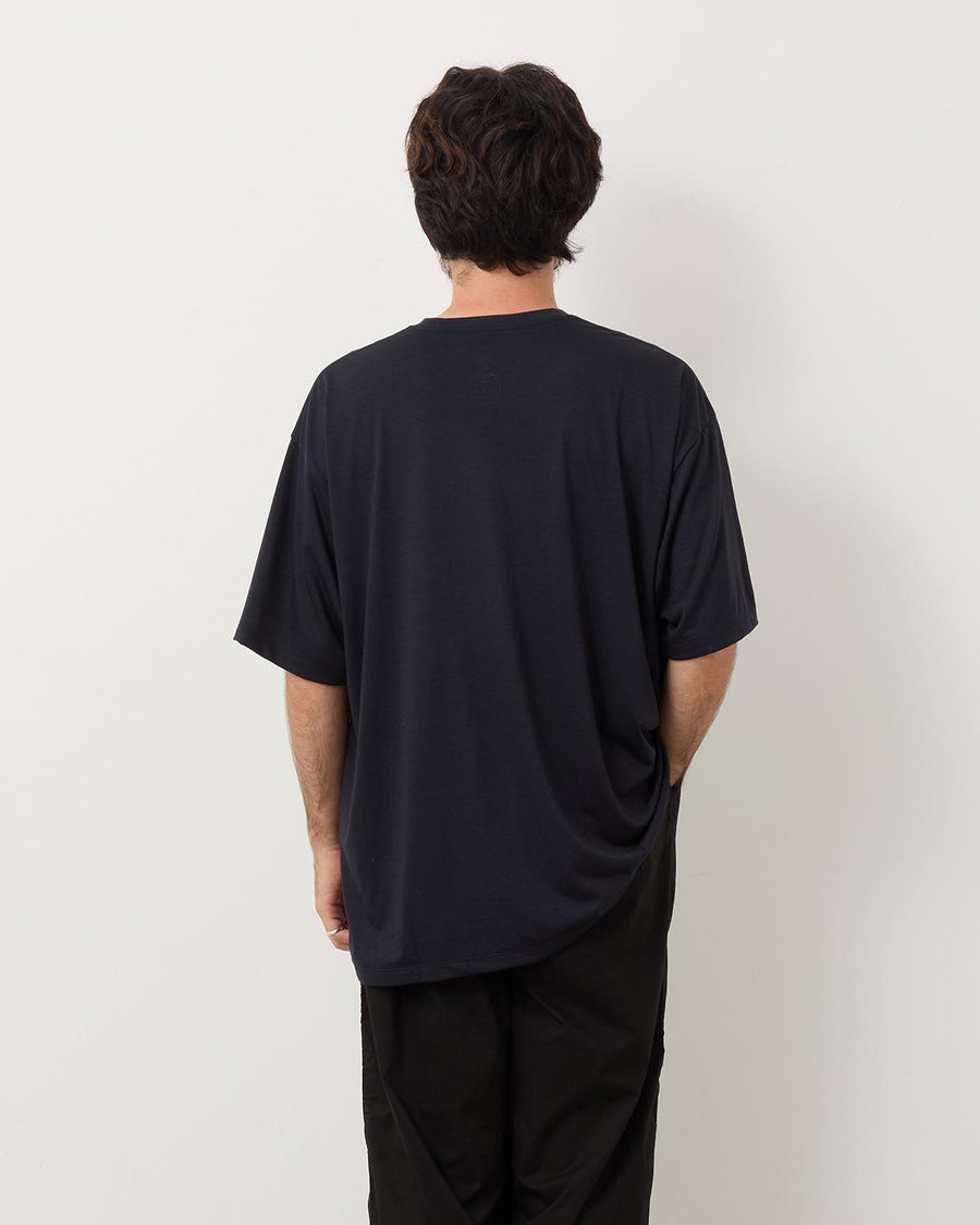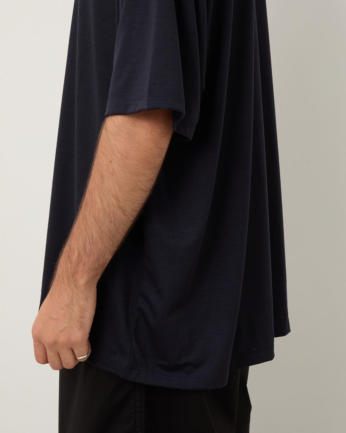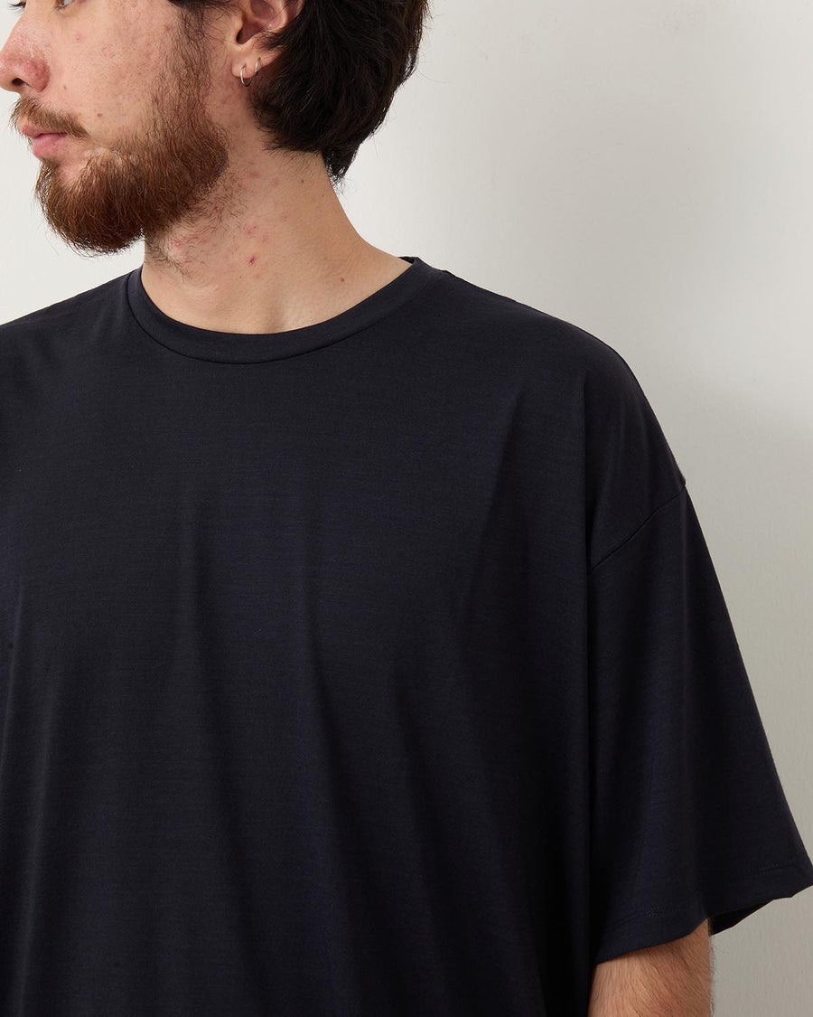 たっぷりとゆとりのあるオーバーサイズシルエットでバインダーネックのショートスリーブTシャツです。