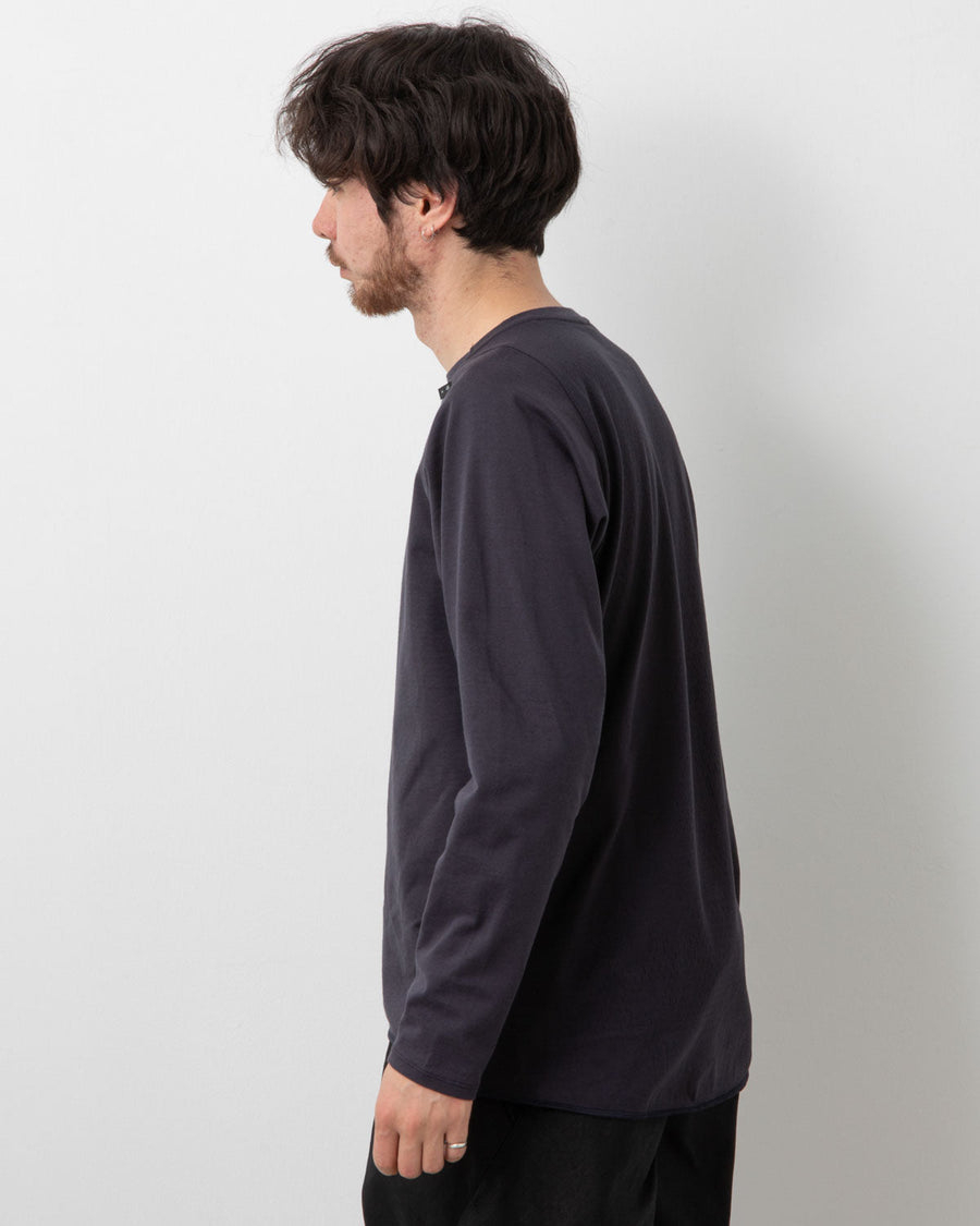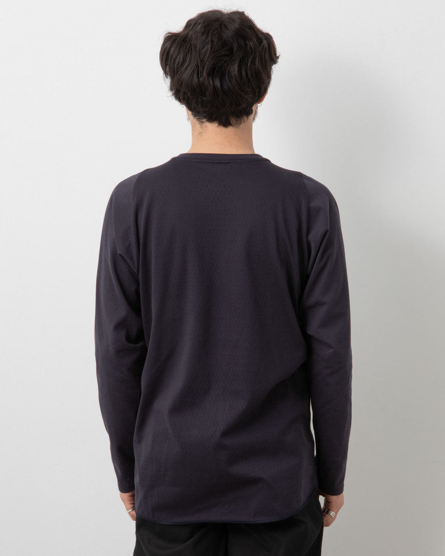 表面にコットンの天竺素材を使用し、背面にはコットンポリエステルのメッシュ素材を使用した「PANELED MESH L/S TOP」です。
