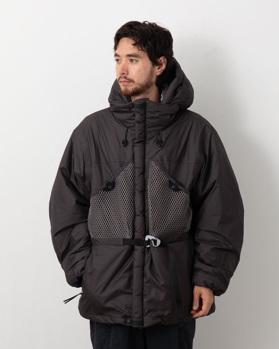 高機能素材をオーバーサイズの特徴的なシルエットで仕立てた軽量中わたアウターです。