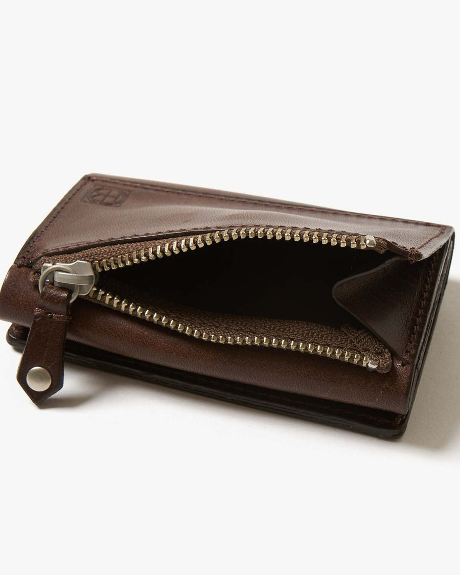 コンパクトながら小銭、お札、カードをそれぞれ分けて収納可能な3つ折りタイプのウォレットです。