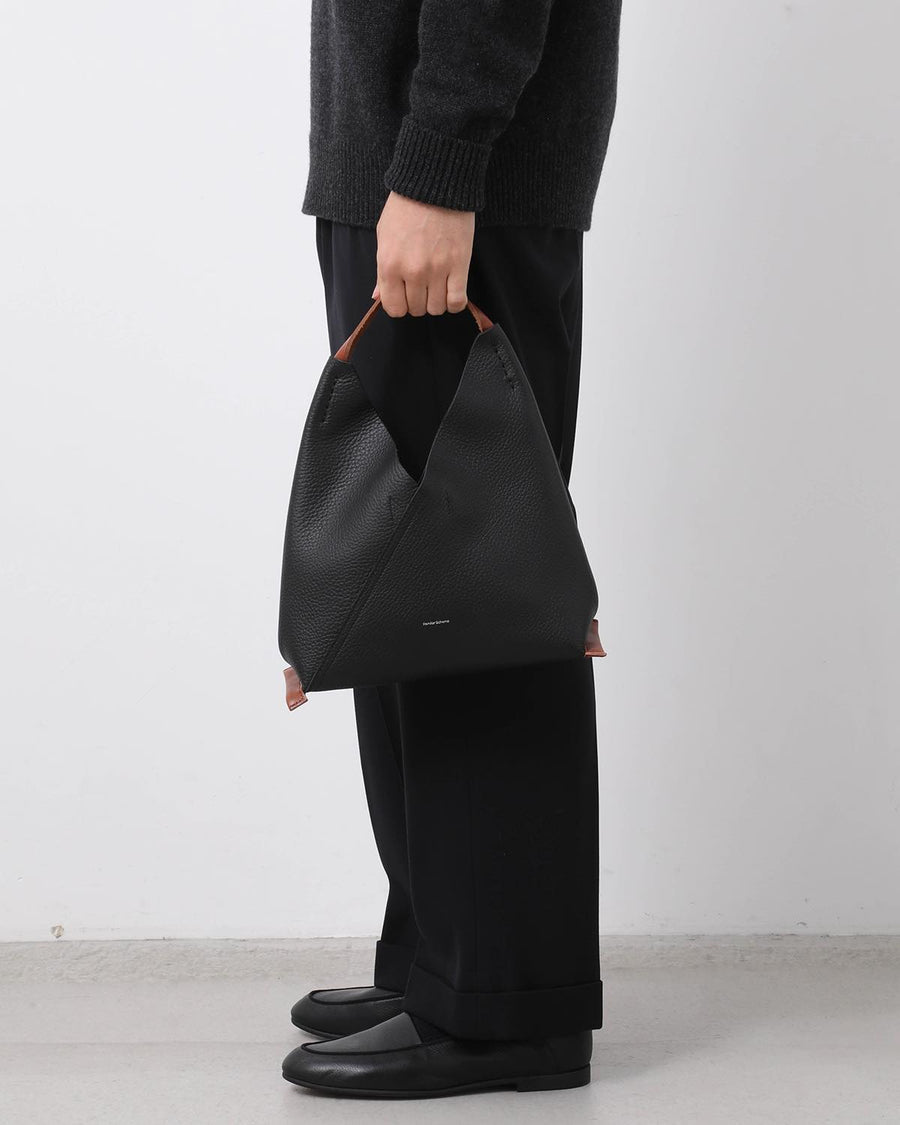 柔らかさと弾力を持ち、細やかで美しいシボによる独特な表情やテクスチャーが特徴的なシュリンクレザーを採用した”SOFT SHRINK SERIES”より「TRIANGLE BAG(トライアングルバッグ)」です。