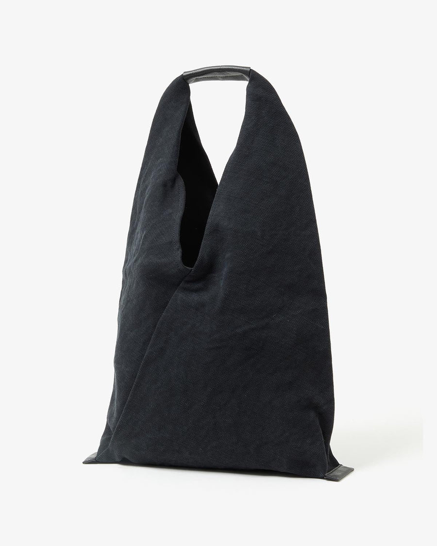 風呂敷や手ぬぐいを縫い合わせ、鞄の代わりとして使われた伝統的な「あずま袋」をデザインソースに、ハンドル部分とボトムサイドには、〈Hender Scheme〉らしく牛革を採用しています。