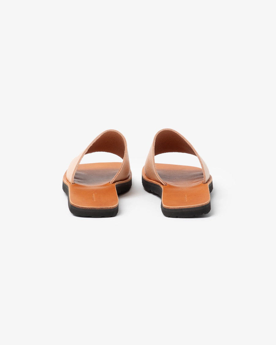 アッパーには、厚みとオイルによる弾力が特徴のイタリア産バケッタレザーを使用。一枚仕立てに最適なこの素材は、足あたりの柔らかさとしっかりとしたホールド感を両立させ、最良のバランスを実現しています。