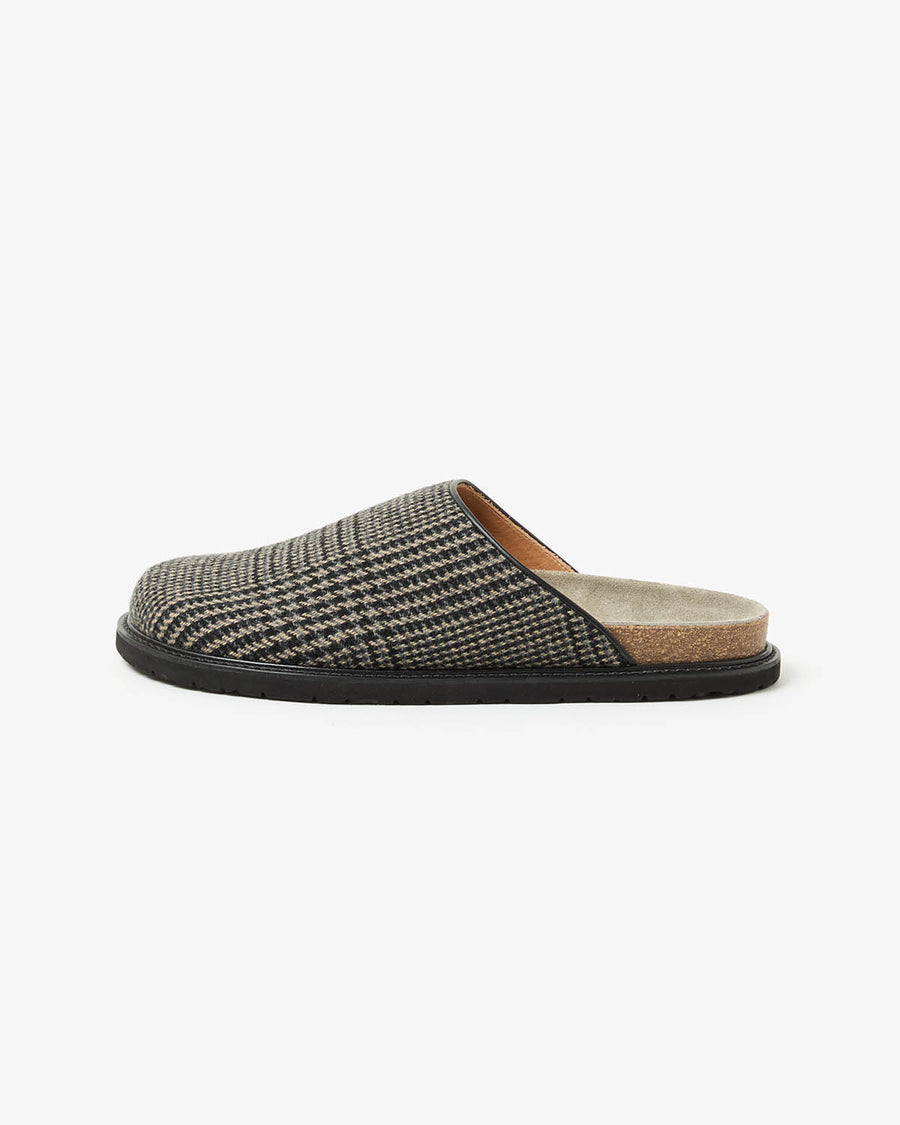 クラシックなツイードファブリックを使用したクロッグサンダル「TWEED CROG 」です。