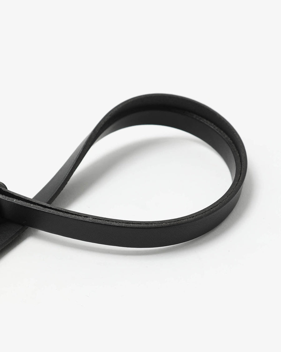 一枚のレザーピースをカットしボディを成形、抜き出したレザーパーツを、留め具として使用しています。