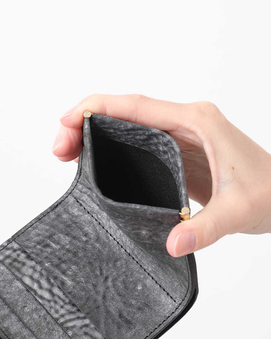 ワックス加工を施したイタリア産のカウレザーから成るプロダクトシリーズFROST SERIESより、「CLASP WALLET」です。