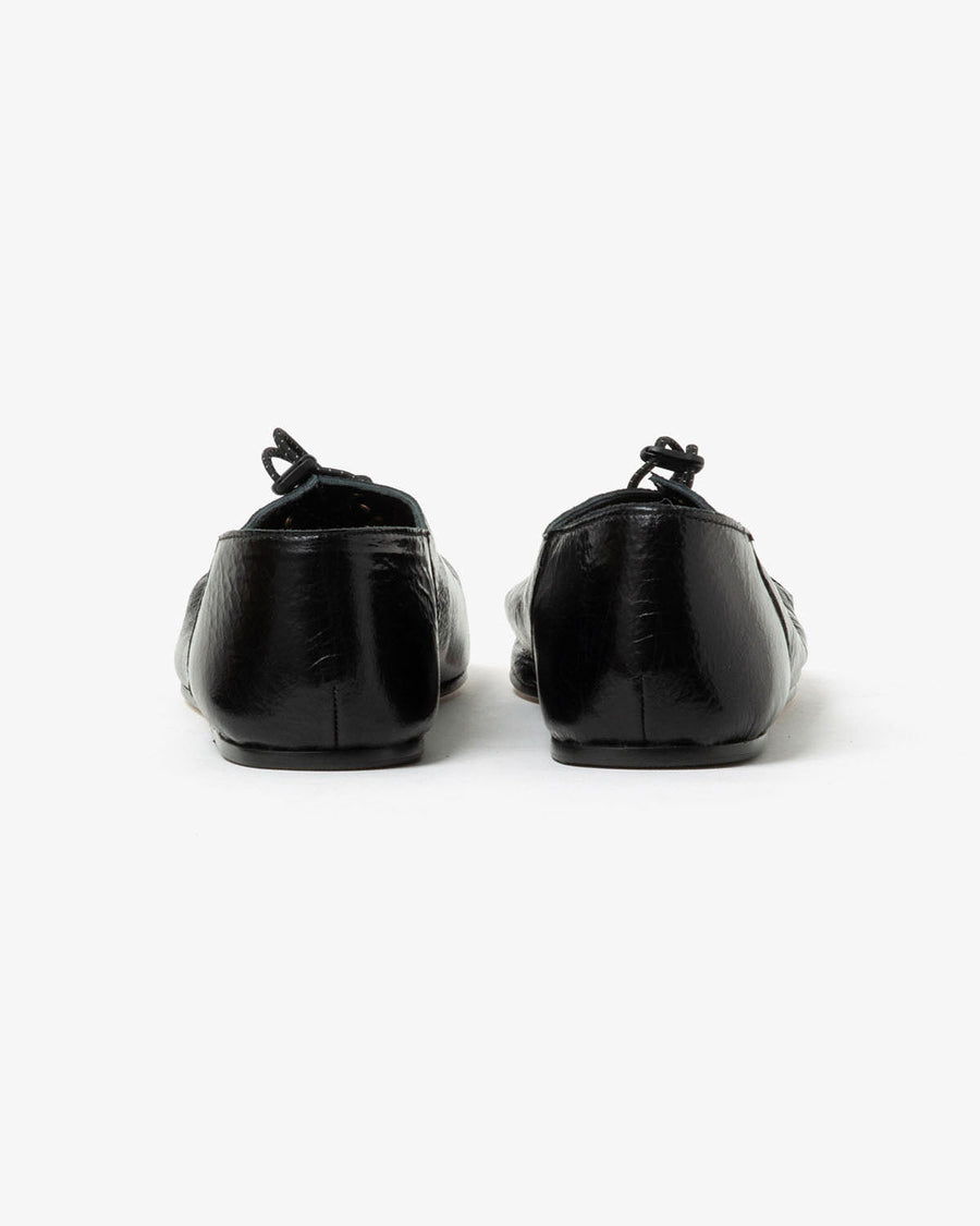 通常は底面でまとめるレザーを、あえて甲側にギャザーを露出させることで立体的な構造を生み出した「DUMPLE(ダンプル)」です。