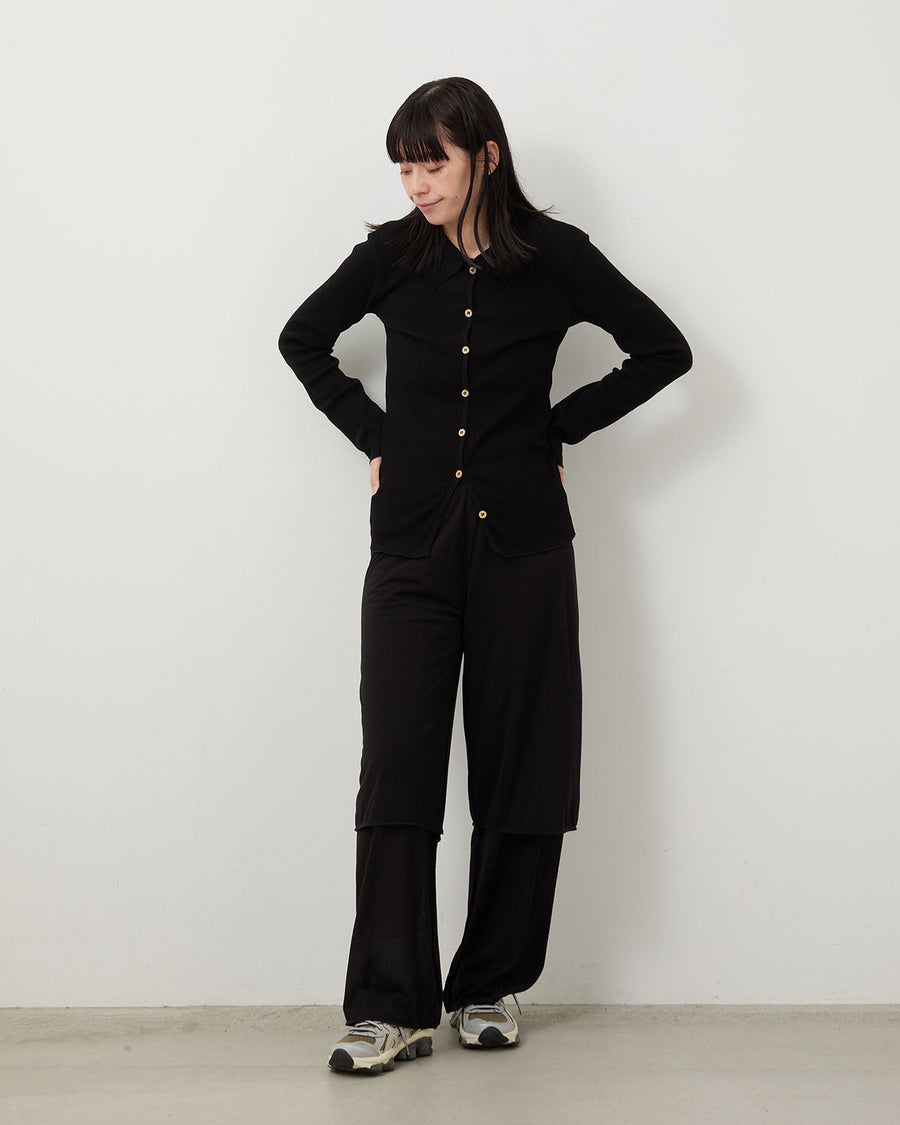 度詰で編み立てた繊細な極細C/NY天竺を使用したリラックスパンツです。