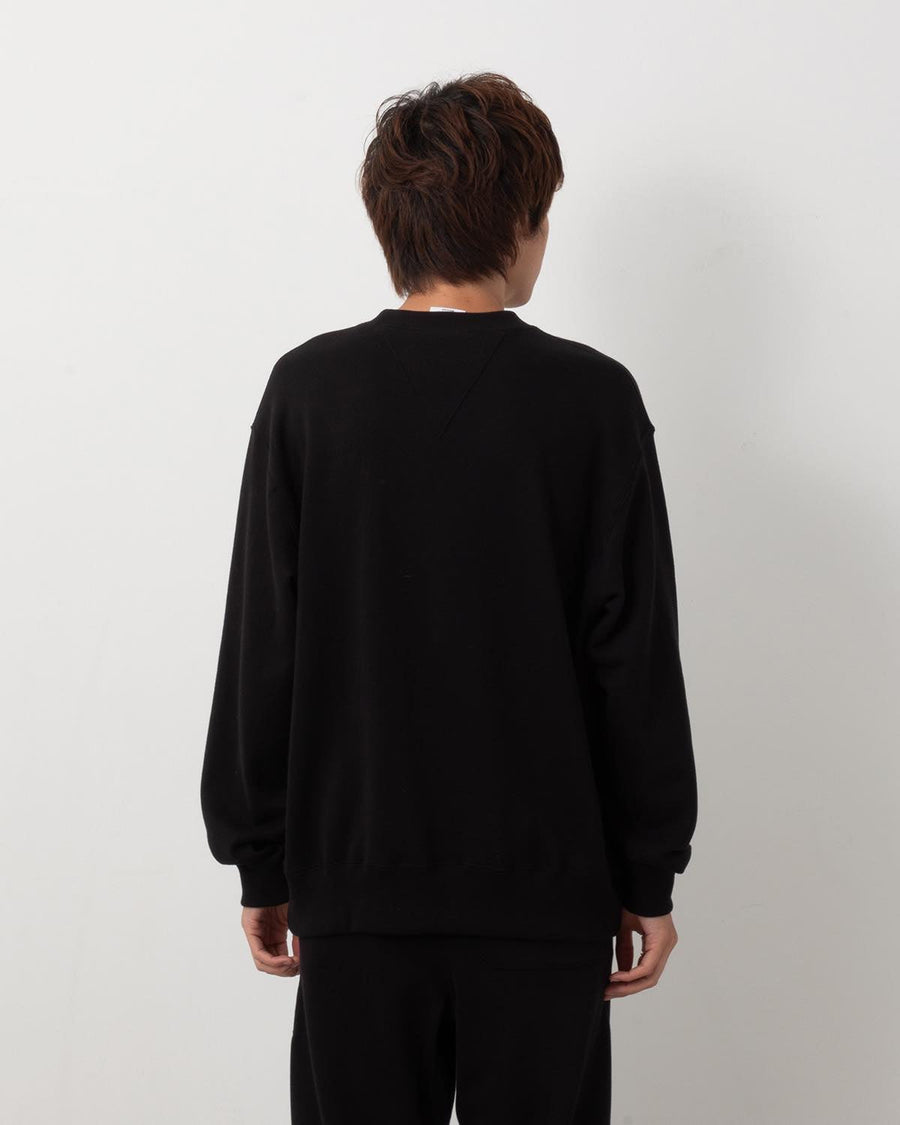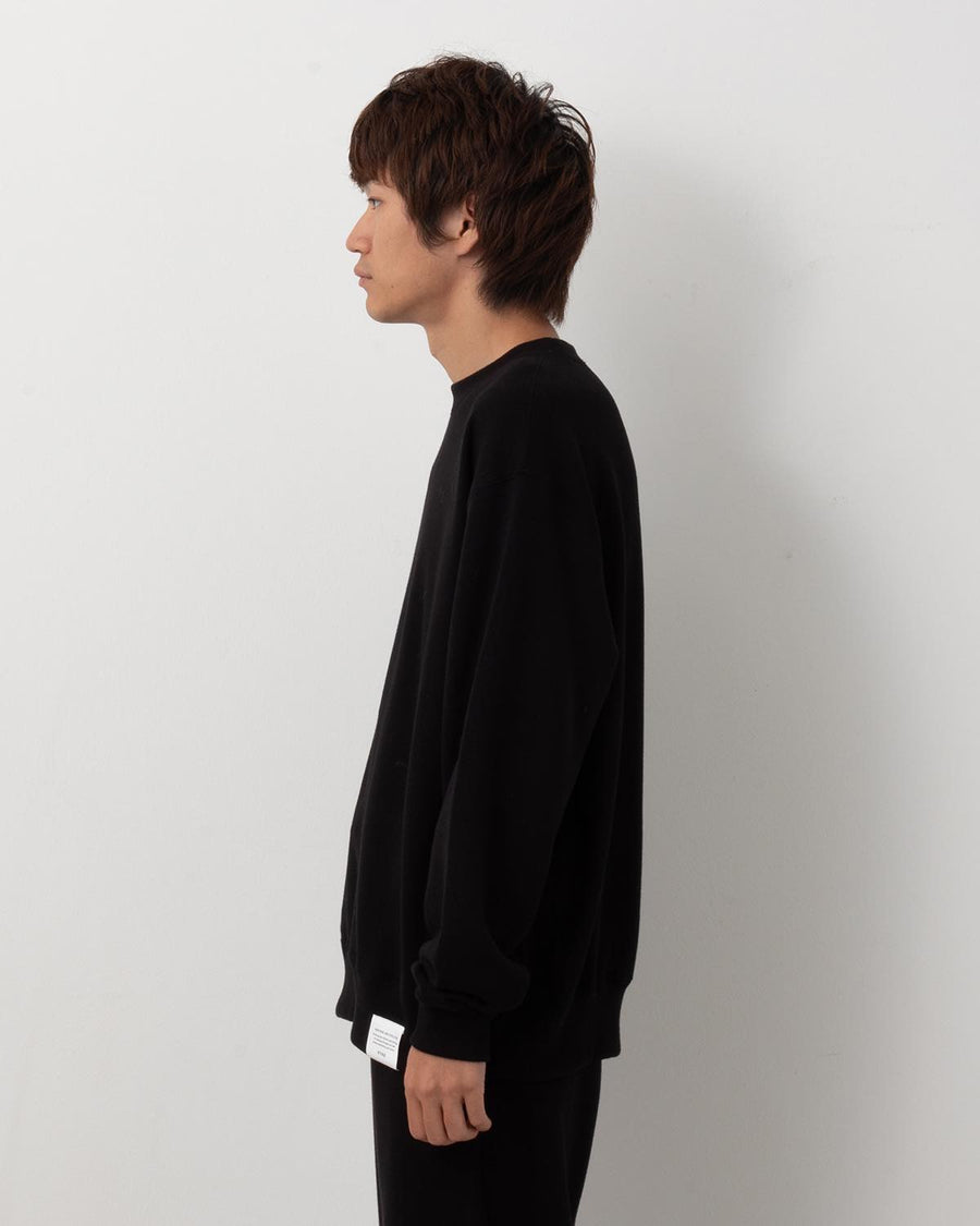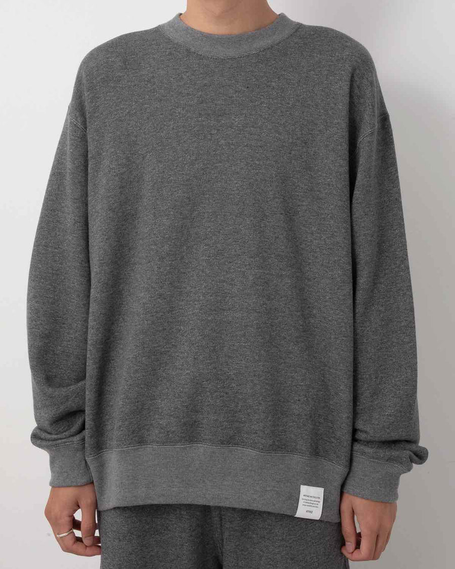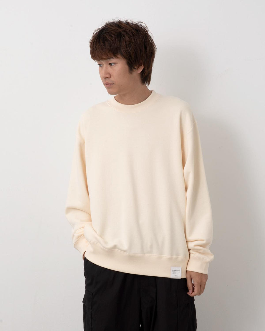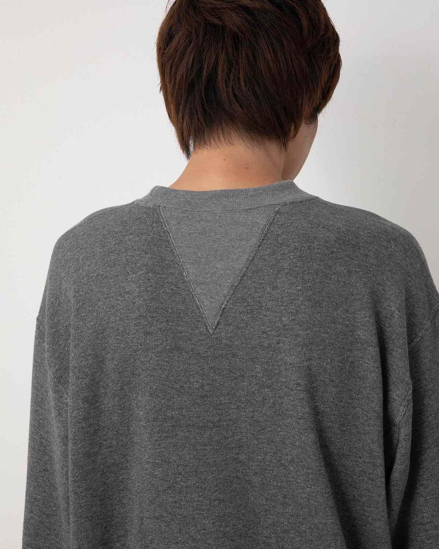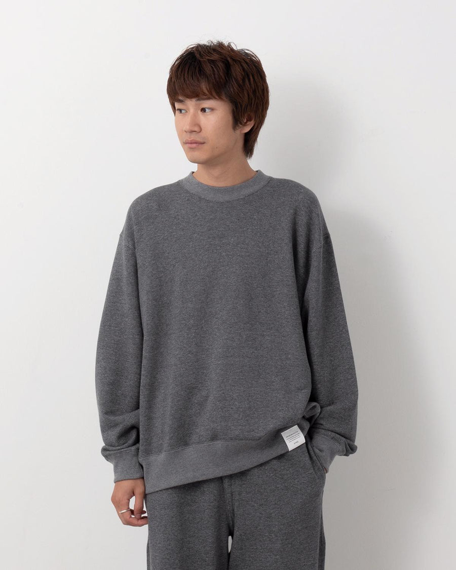 旧式のアズマ編機で編み立てた裏毛素材を使用したクルーネックスウェットです。