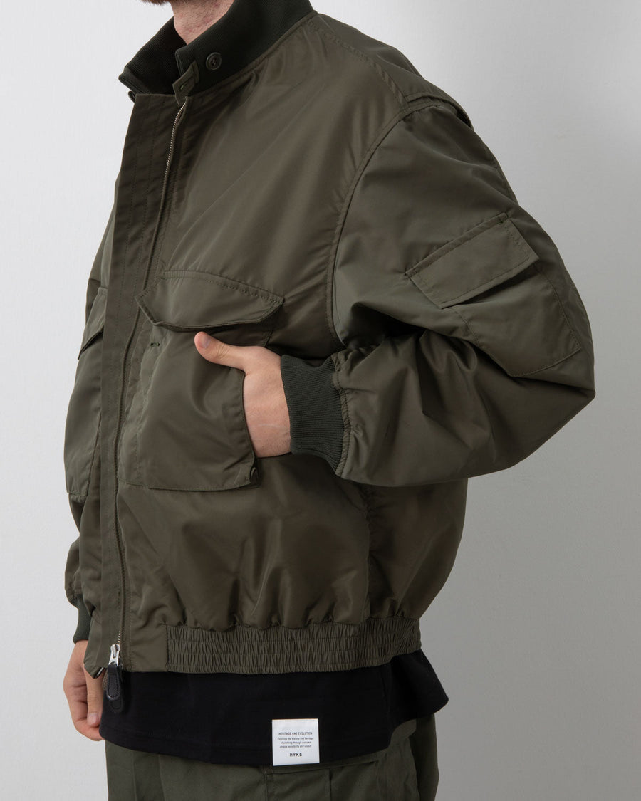 U.S.NAVY TYPE G-8 WEP JACKETから着想を得た、襟や逆開ファスナー、サイドポケットでシルエットを楽しめる実用的な仕様です。
