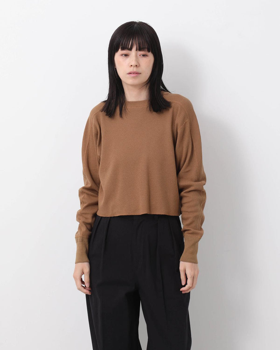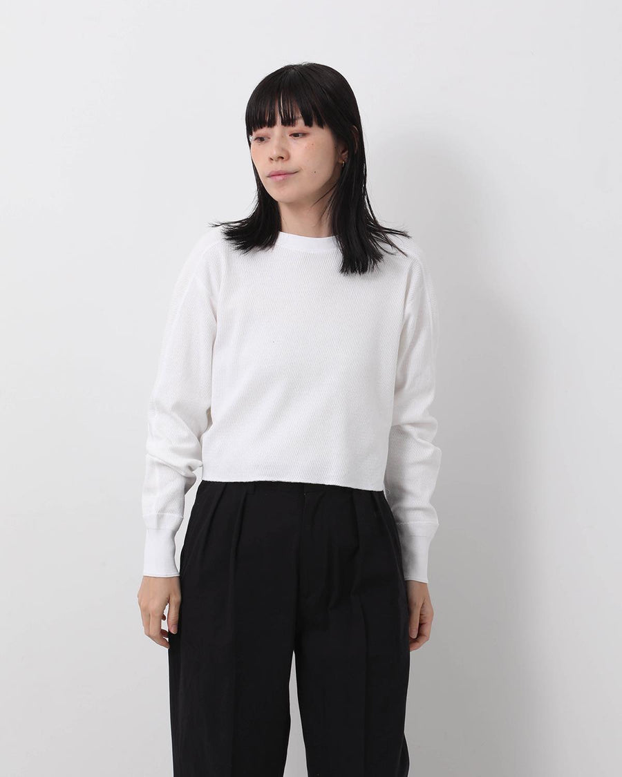 オープンエンド糸を使用したオーガニックコットン生地を使用した「CROPPED THERMAL SHIRT」です。