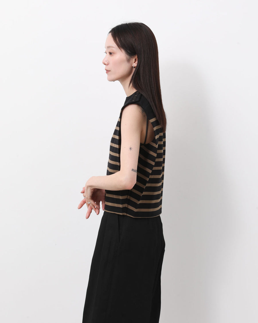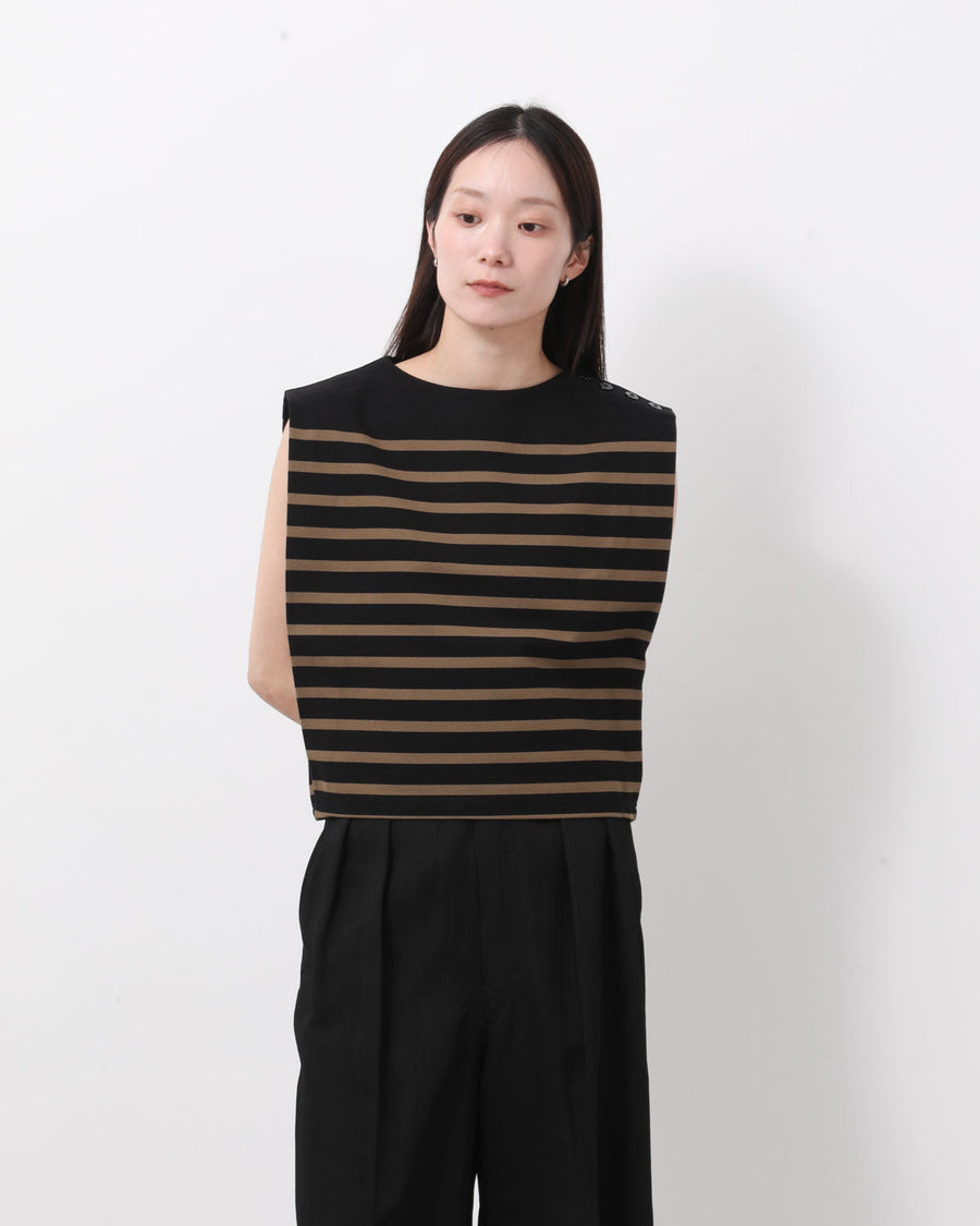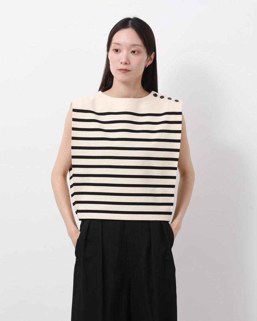 バスクシャツからインスピレーションを得てデザインされたノースリーブカットソーです。
