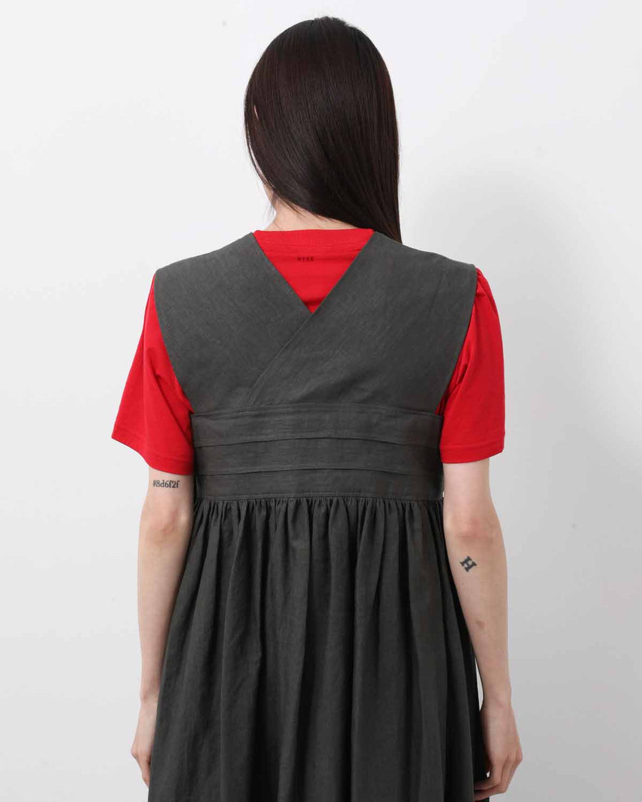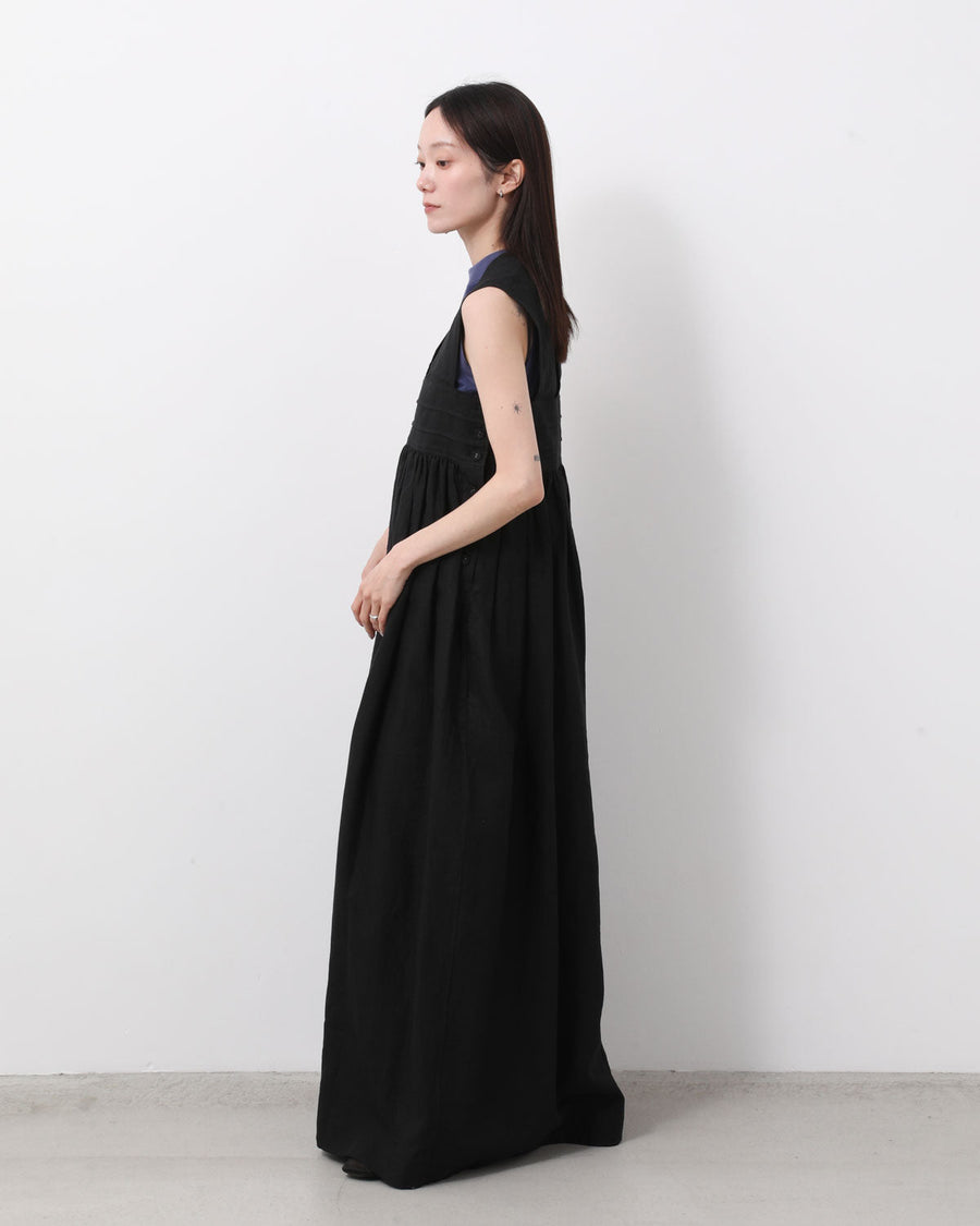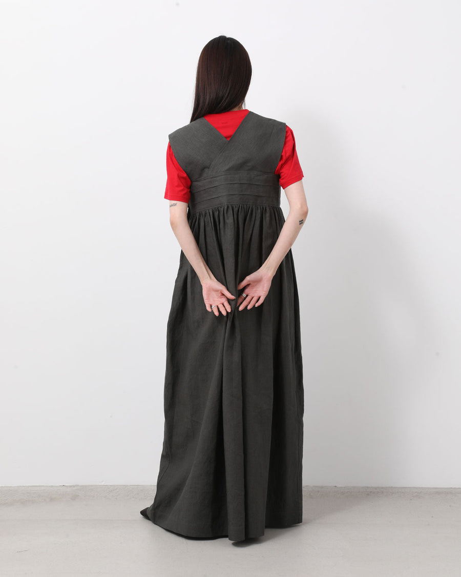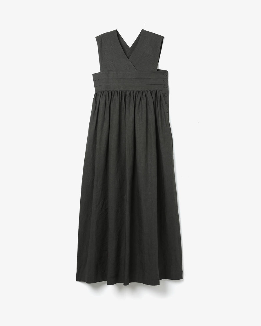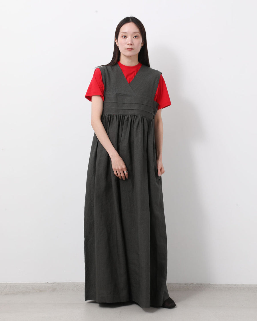 フレンチリネンを使用し、織りから加工までを国内で仕上げた平織り素材のドレスです。