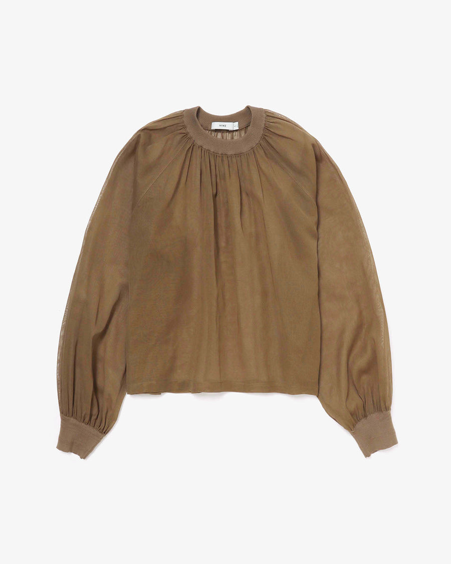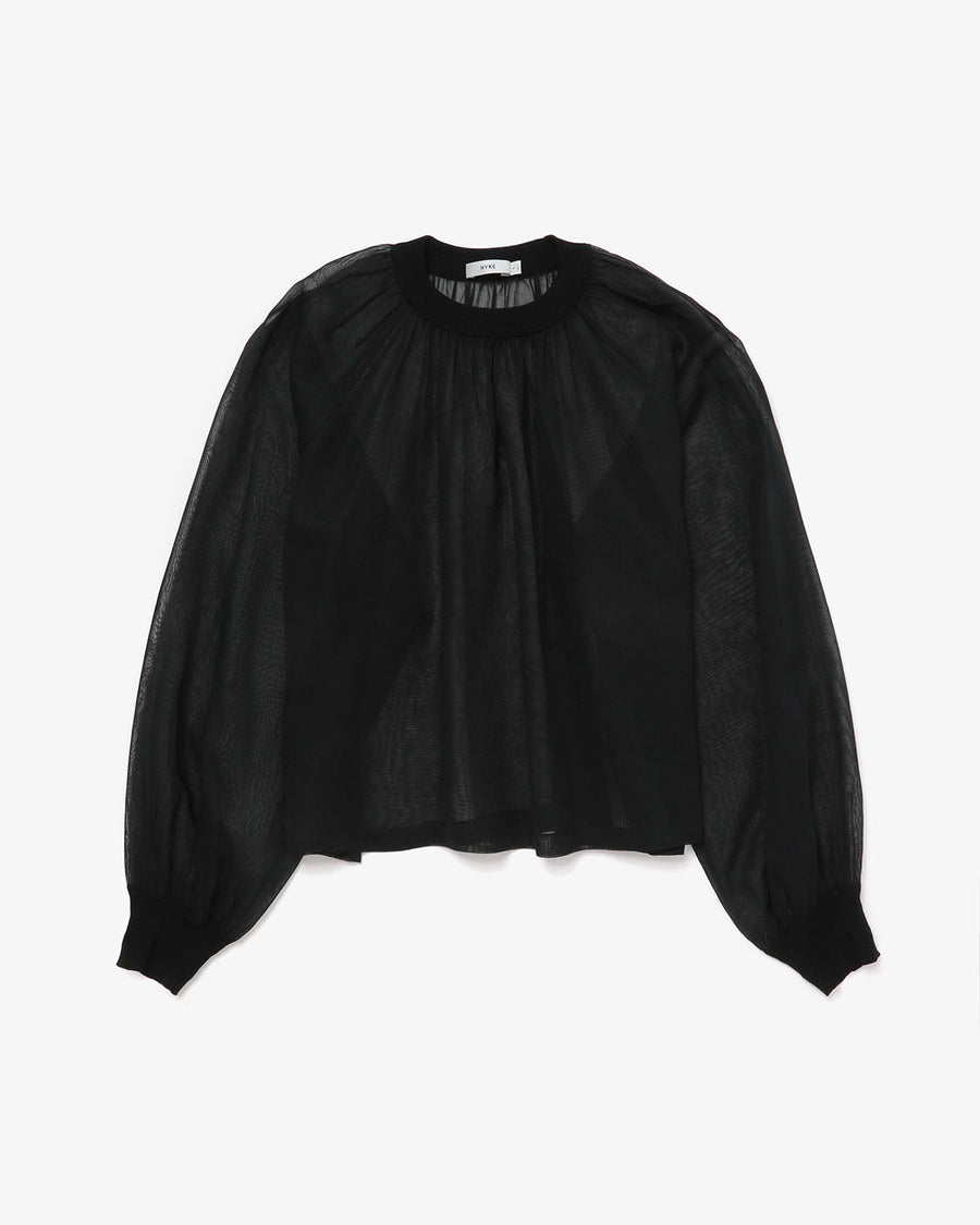 HYKE COTTON VOILE SHIRRED BLOUSE