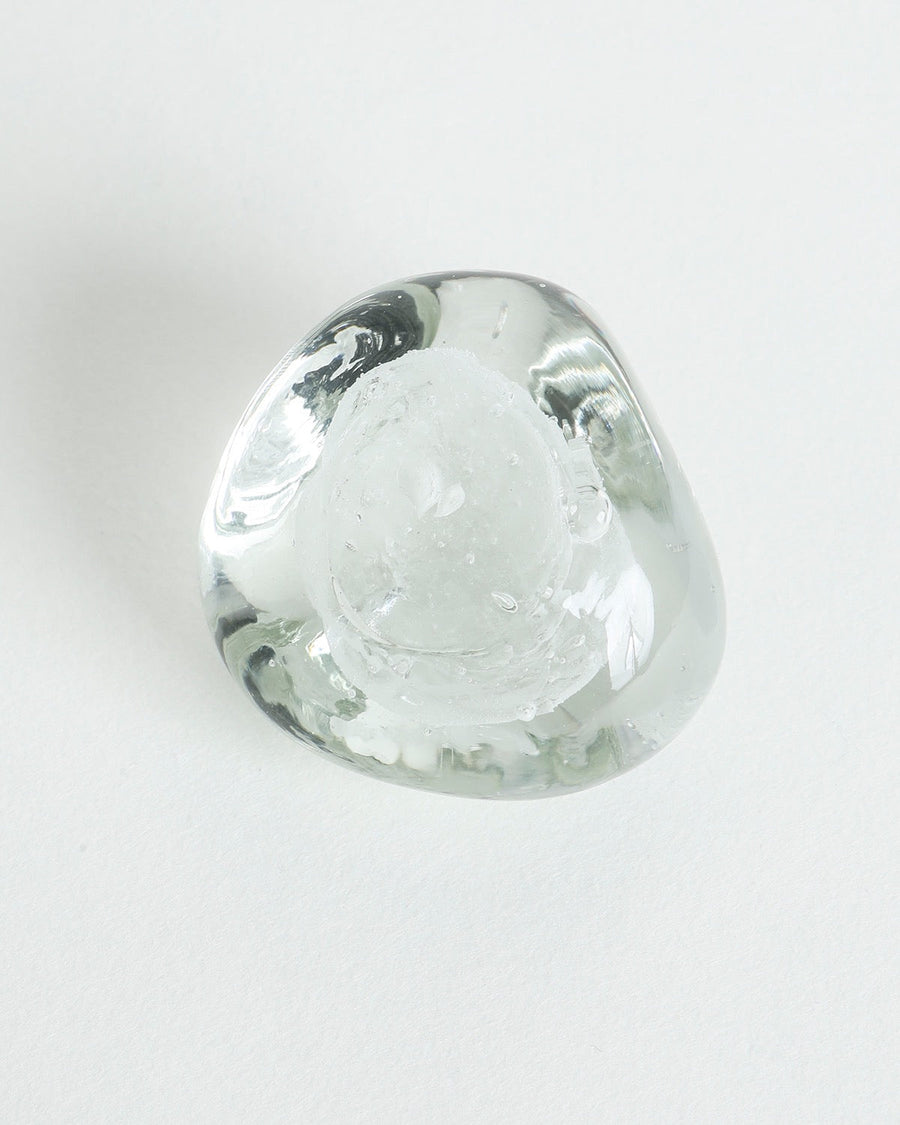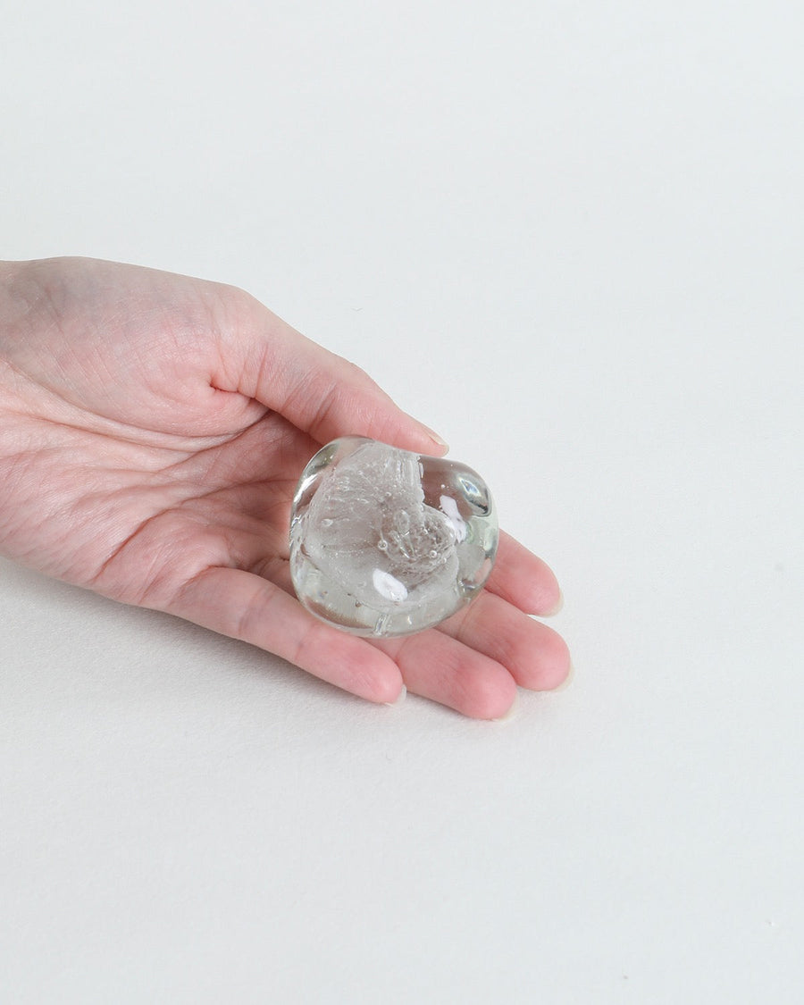 沖縄に拠点を置き、たった一人でガラスの器を製作している作家〈おおやぶみよ〉の石をモチーフにしたガラス細工です。
