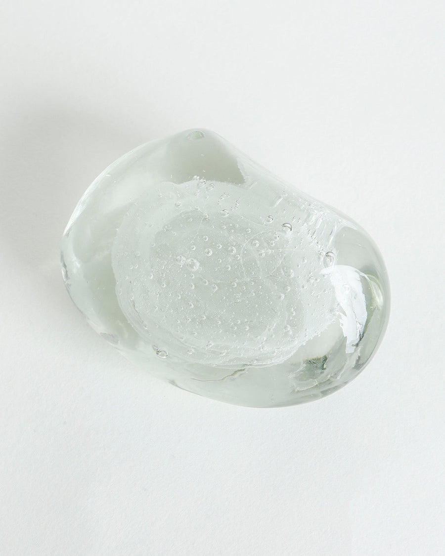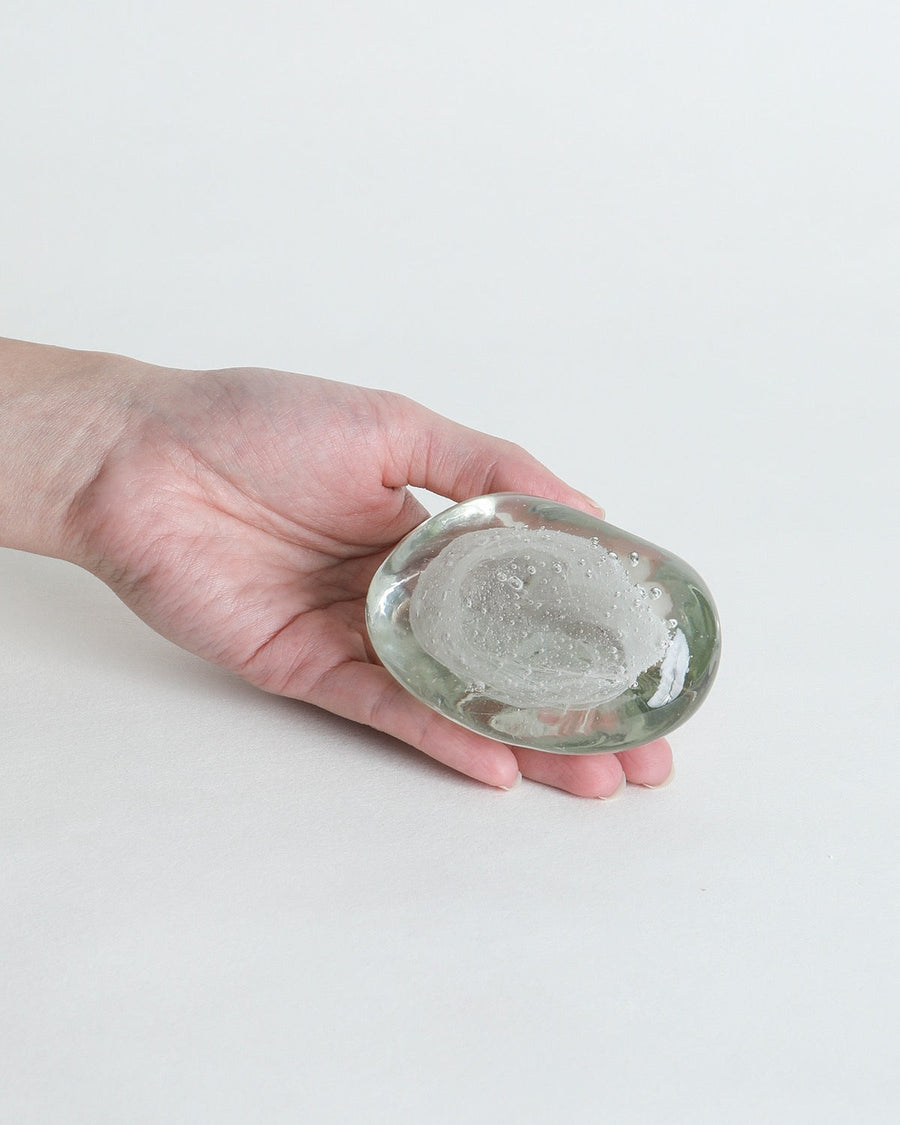 沖縄に拠点を置き、たった一人でガラスの器を製作している作家〈おおやぶみよ〉の石をモチーフにしたガラス細工です。