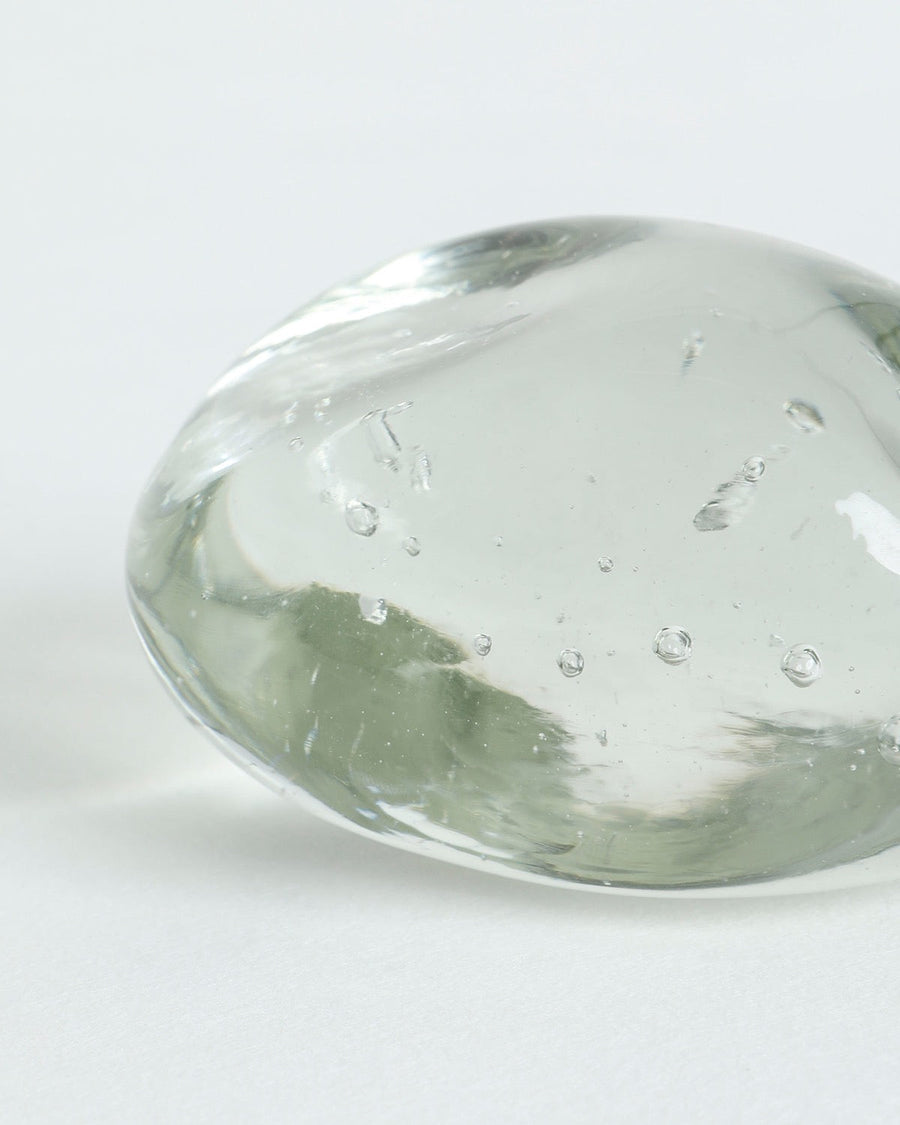 沖縄に拠点を置き、たった一人でガラスの器を製作している作家〈おおやぶみよ〉の石をモチーフにしたガラス細工です。
