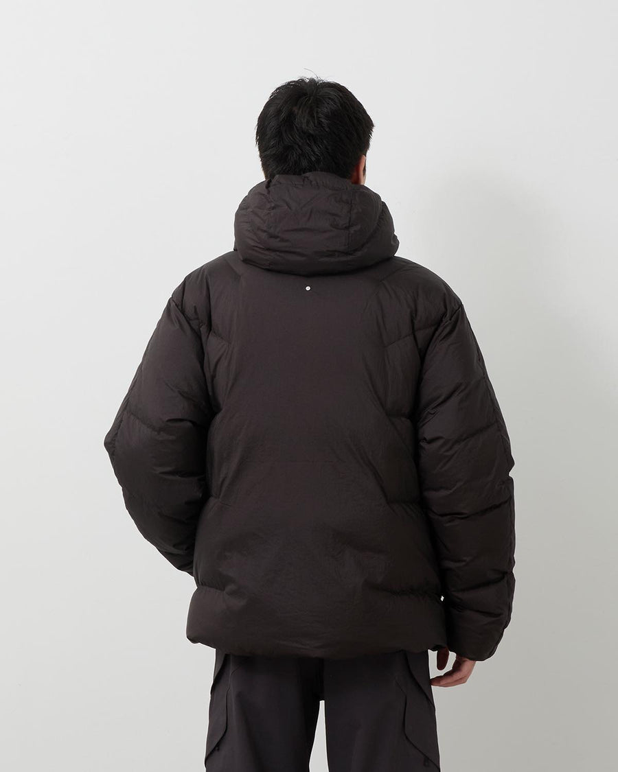 フードと裾にはドローコードシステムを搭載し、好みに応じてシルエット調整が可能。左右の腰にはハンドウォーマーポケット、フロント内側にも収納ポケットを備え、実用性にも優れています。