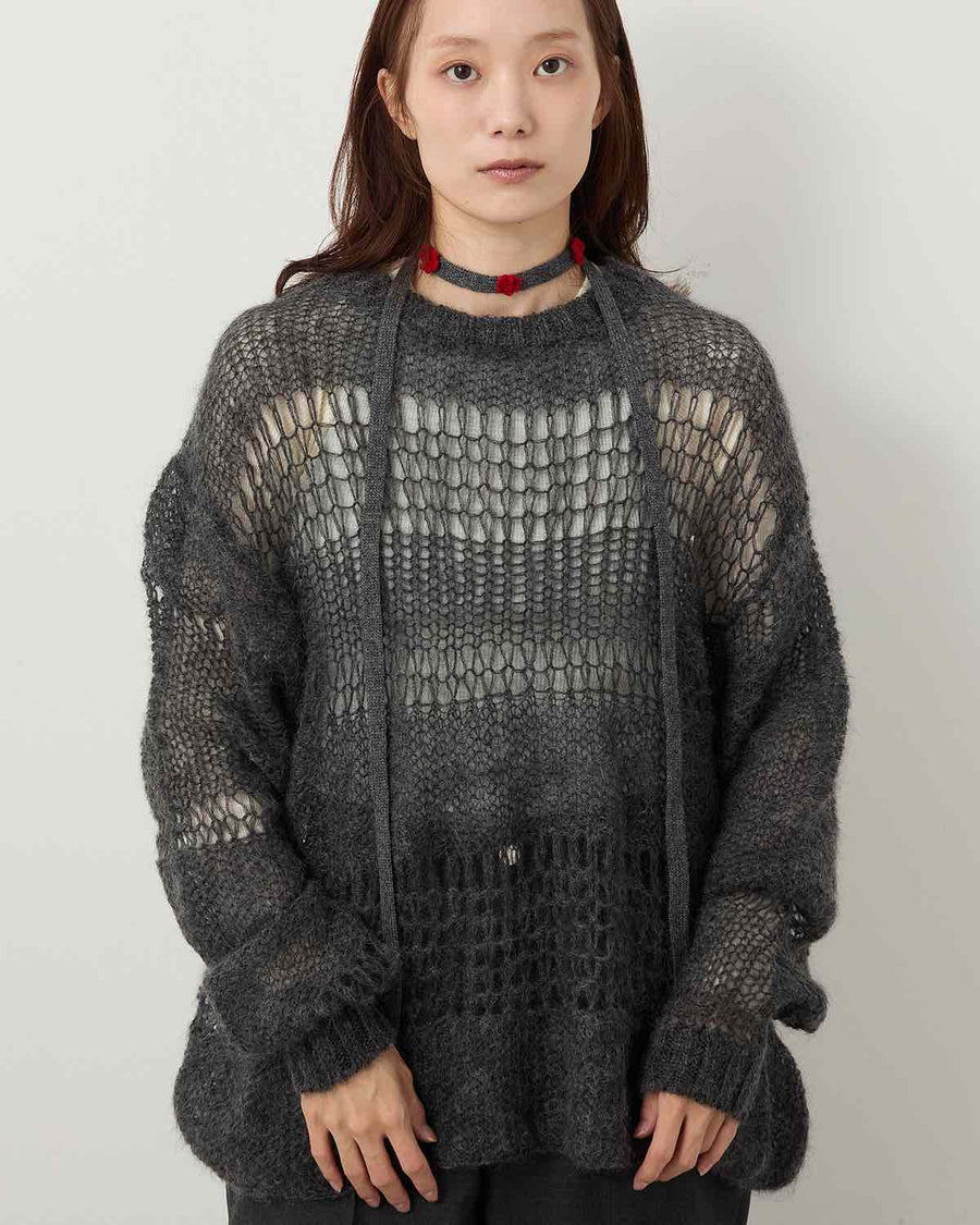 特殊な洗い加工により、水溶性ビニロン糸を溶かすことで、カシミアの風合いを残しながらテープ状に仕上げています。