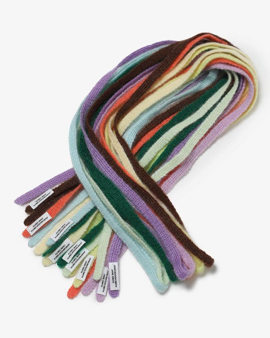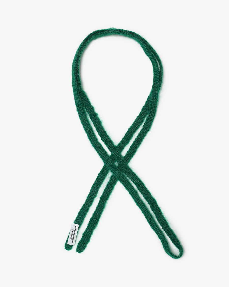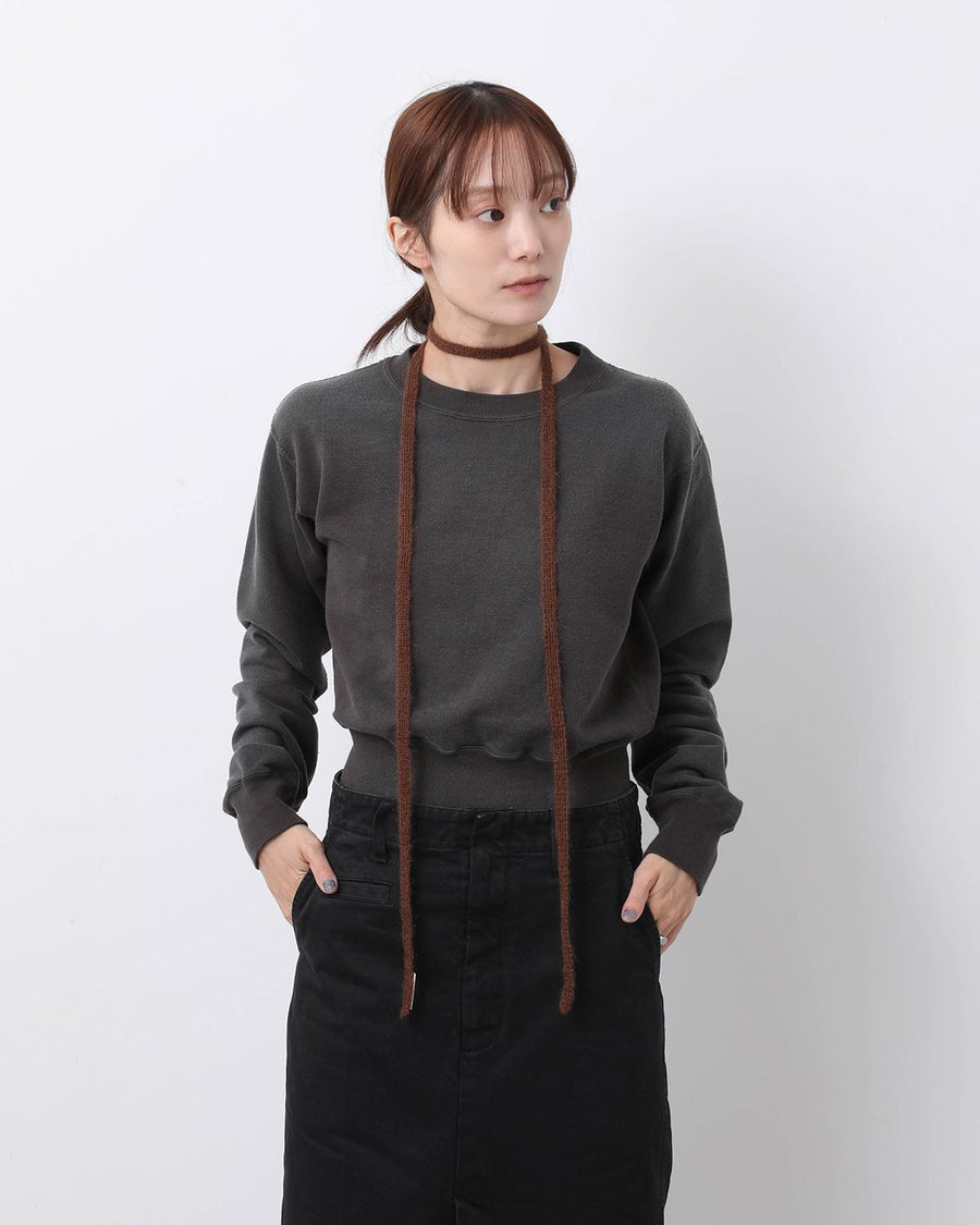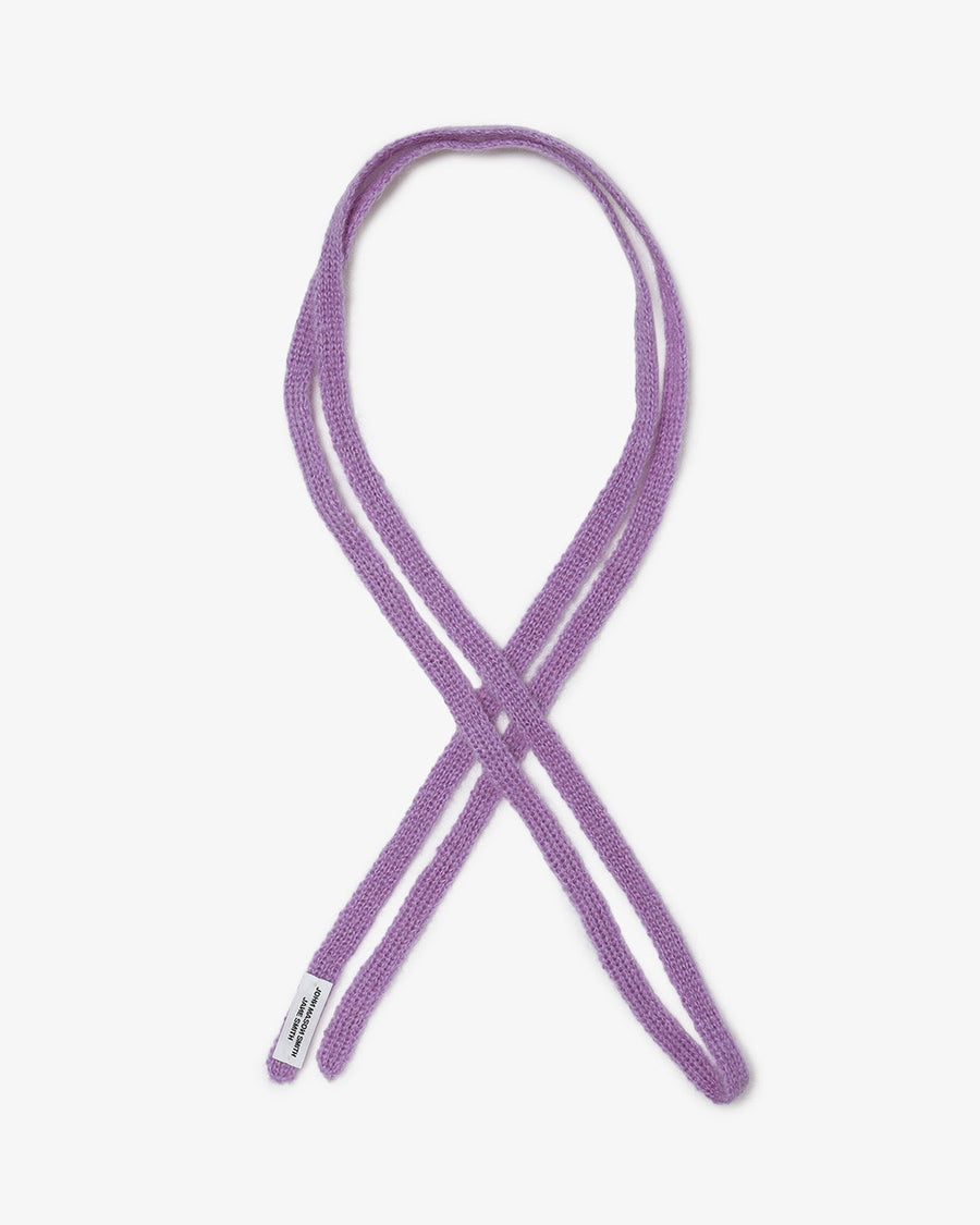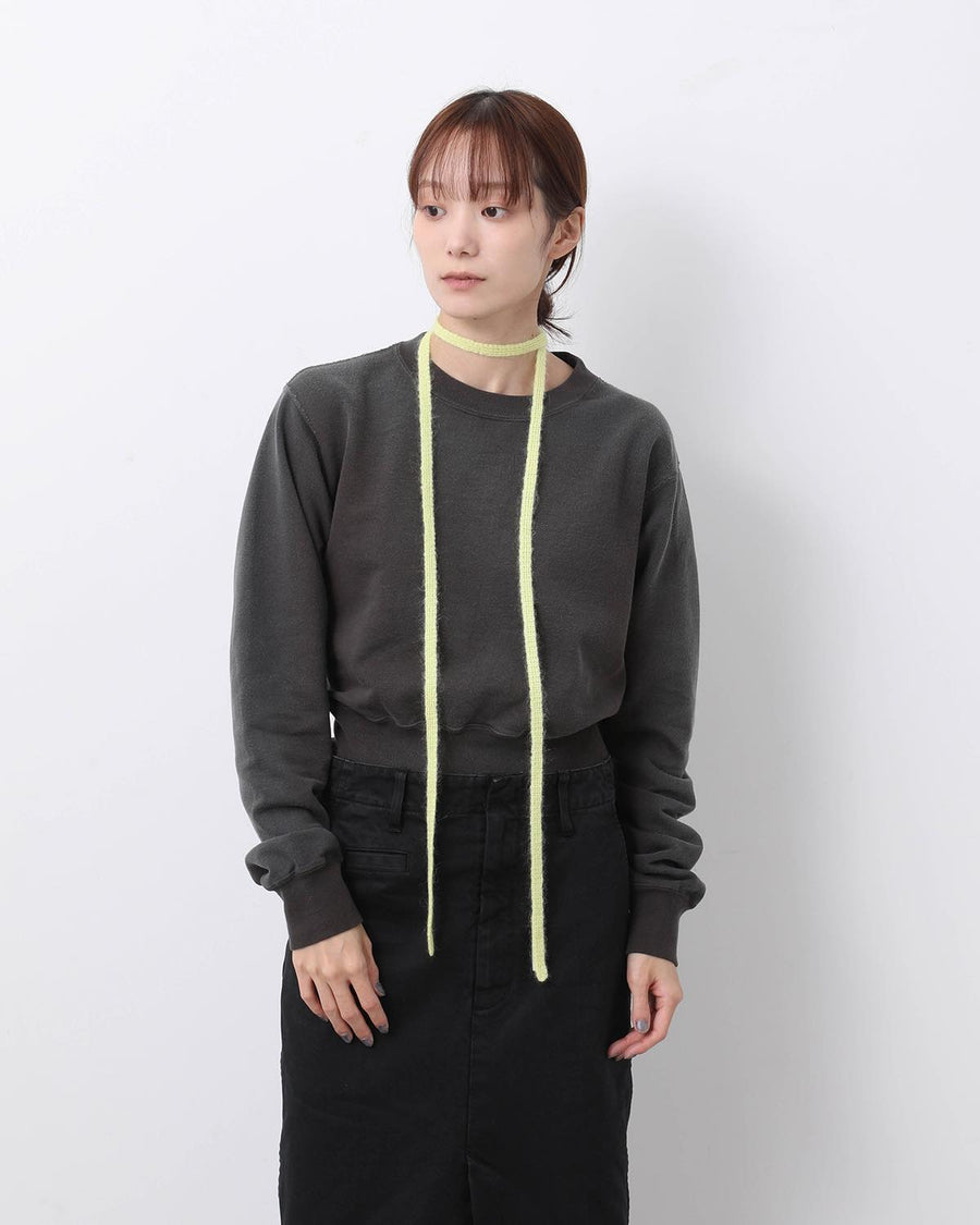「MOHAIR RANDOM BORDER CREW KNIT for COVERCHORD」と同じロングヘアーモヘア糸をテープ状に編み立てました。