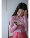 〈JANE SMITH〉のコレクションで人気を博すショートカーディガンを、ロングスリーブ仕様にした「16G COTTON POLYESTER CARDIGAN」です。