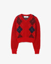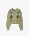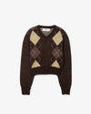 JANE SMITH 7G WOOL JACQUARD ARGYLE V NECK SHORT KNIT