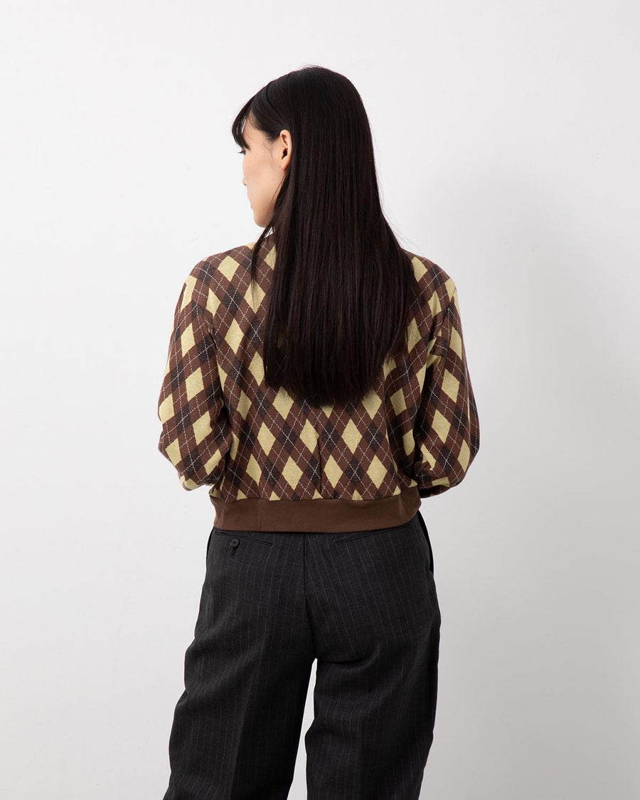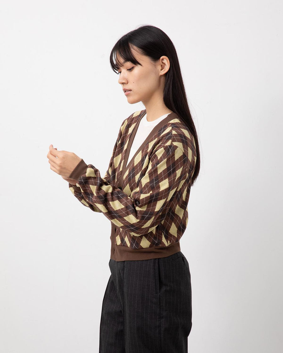 JANE SMITH COTTON JACQUARD ARGYLE V-NECK CARDIGAN
