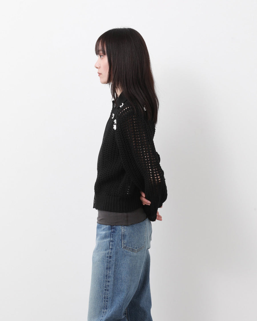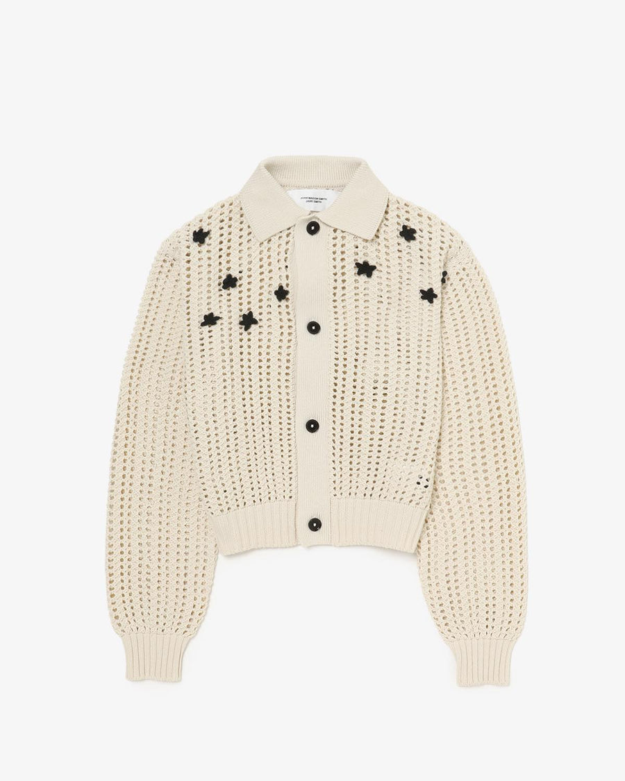 JANE SMITH CROCHET STAR 7G MESH POLO COLLAR CARDIGAN