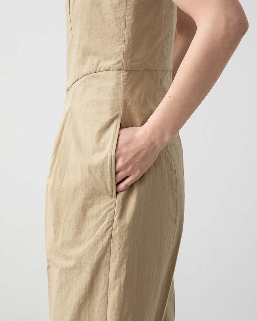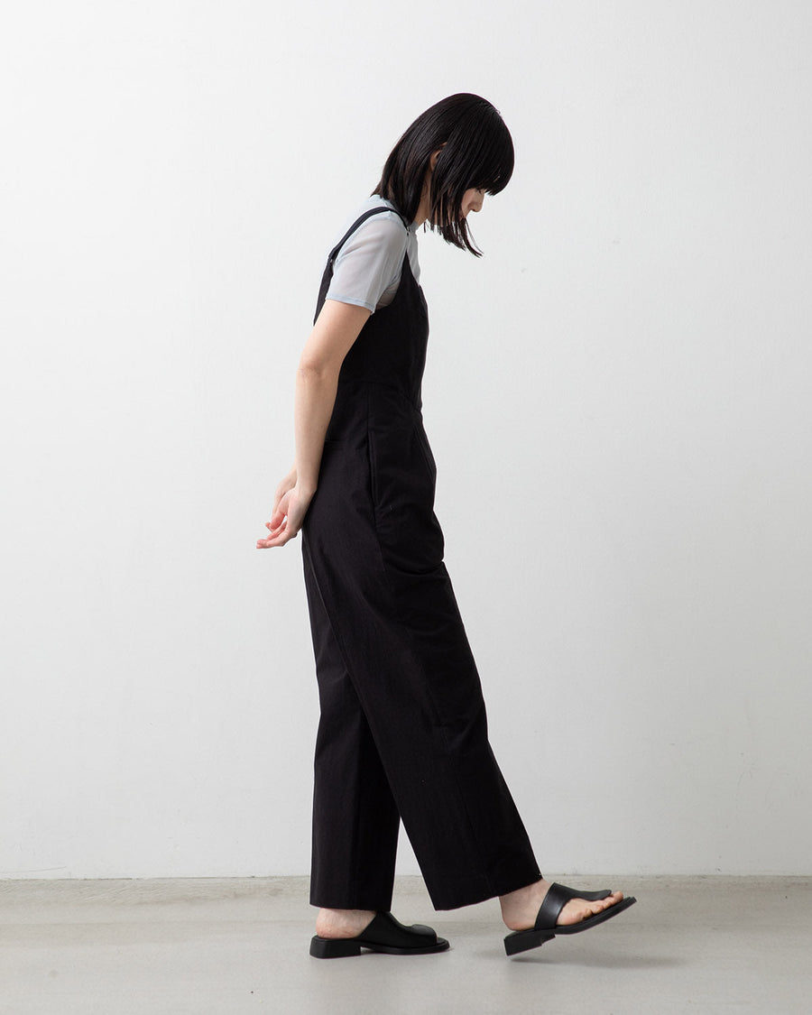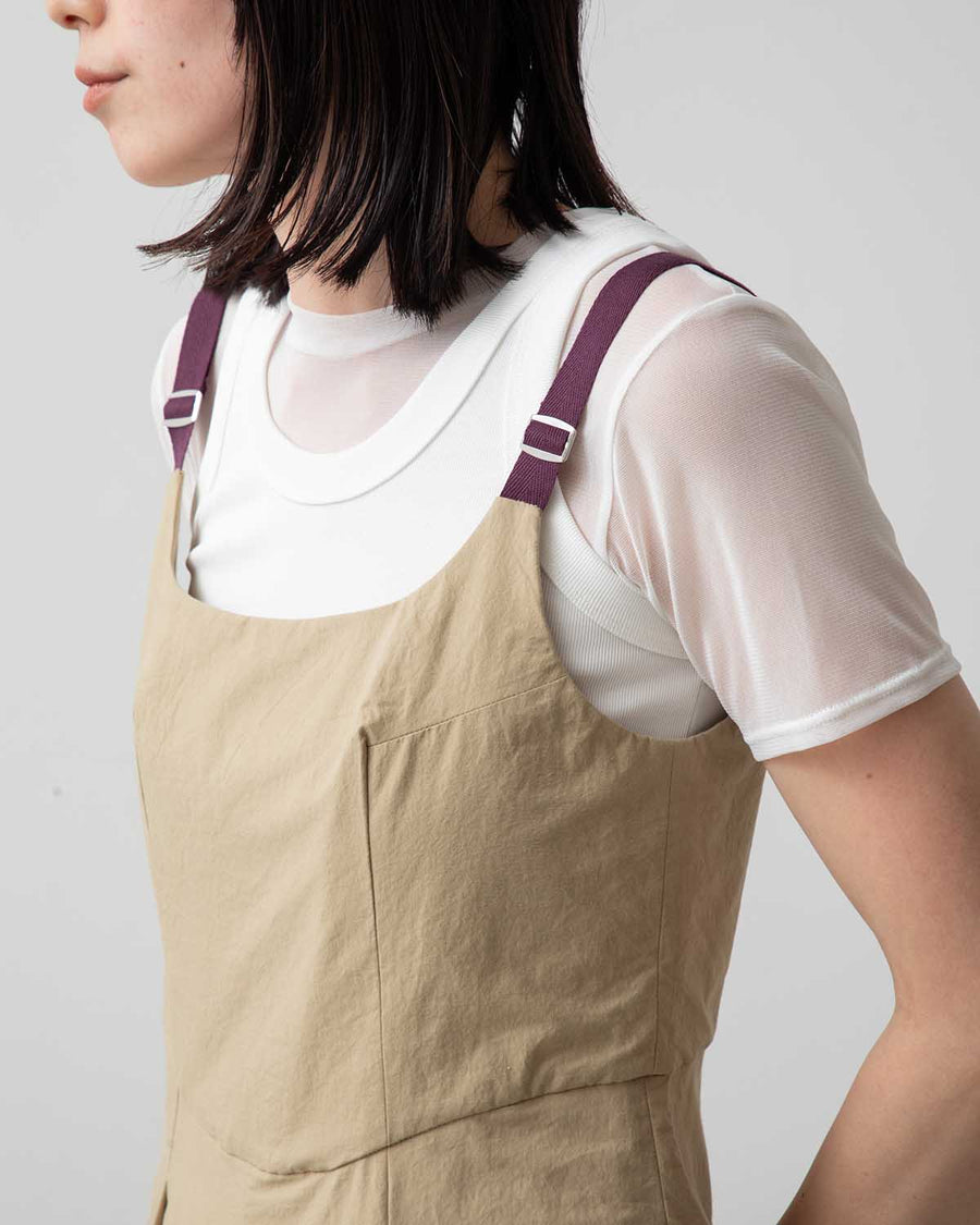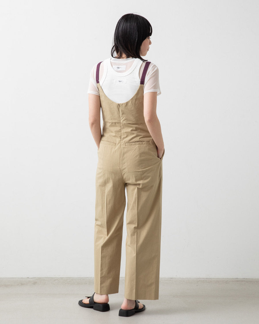 高密度で織り上げたコットンブロード生地に近江晒加工と反撥加工を施しワッシャー感と独特のコシを表現したオールインワンです。