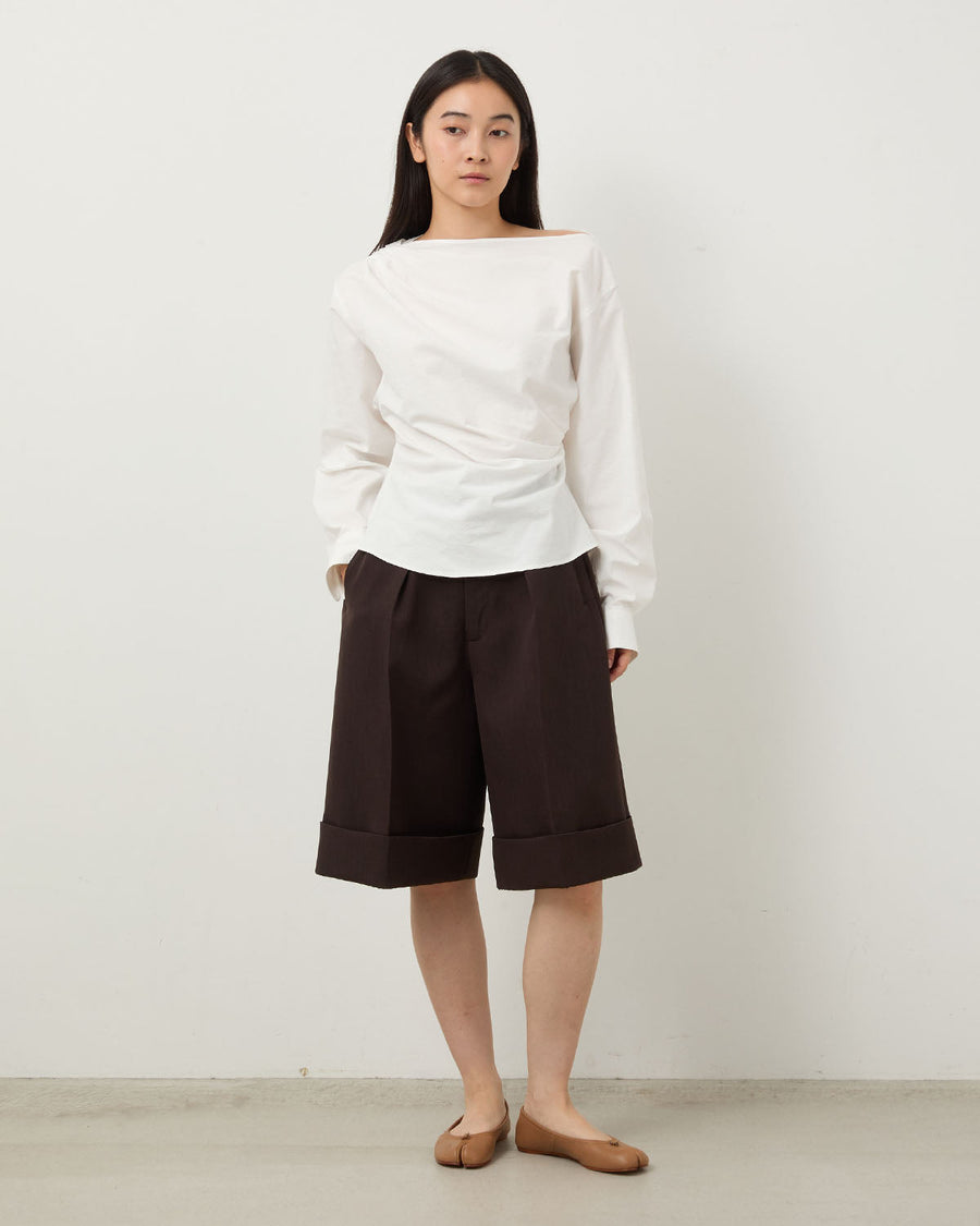 リネンライクなナチュラル感とドライな風合いを持つ、二重織ポリエステル素材を使用したショーツです。