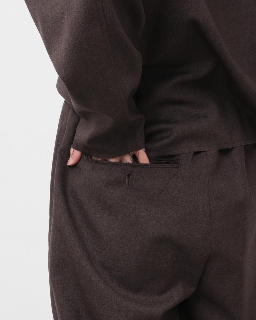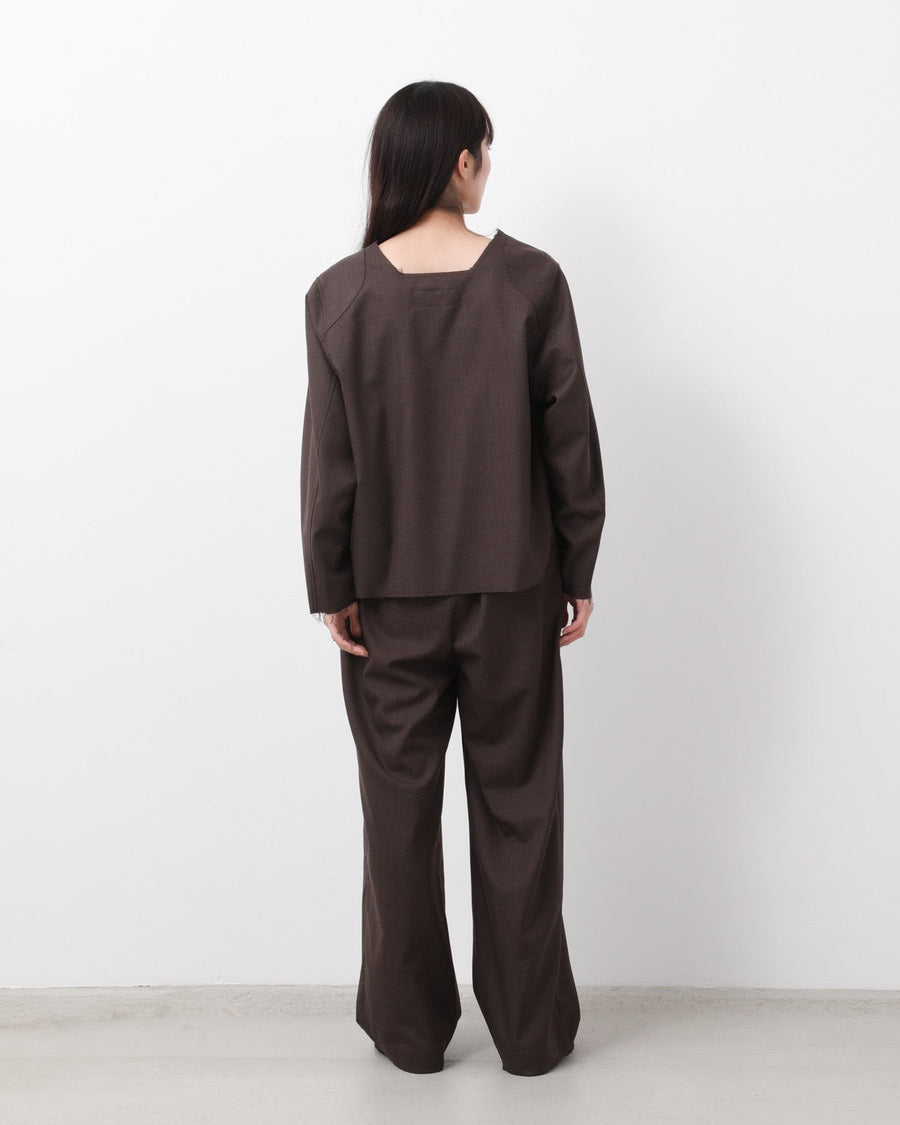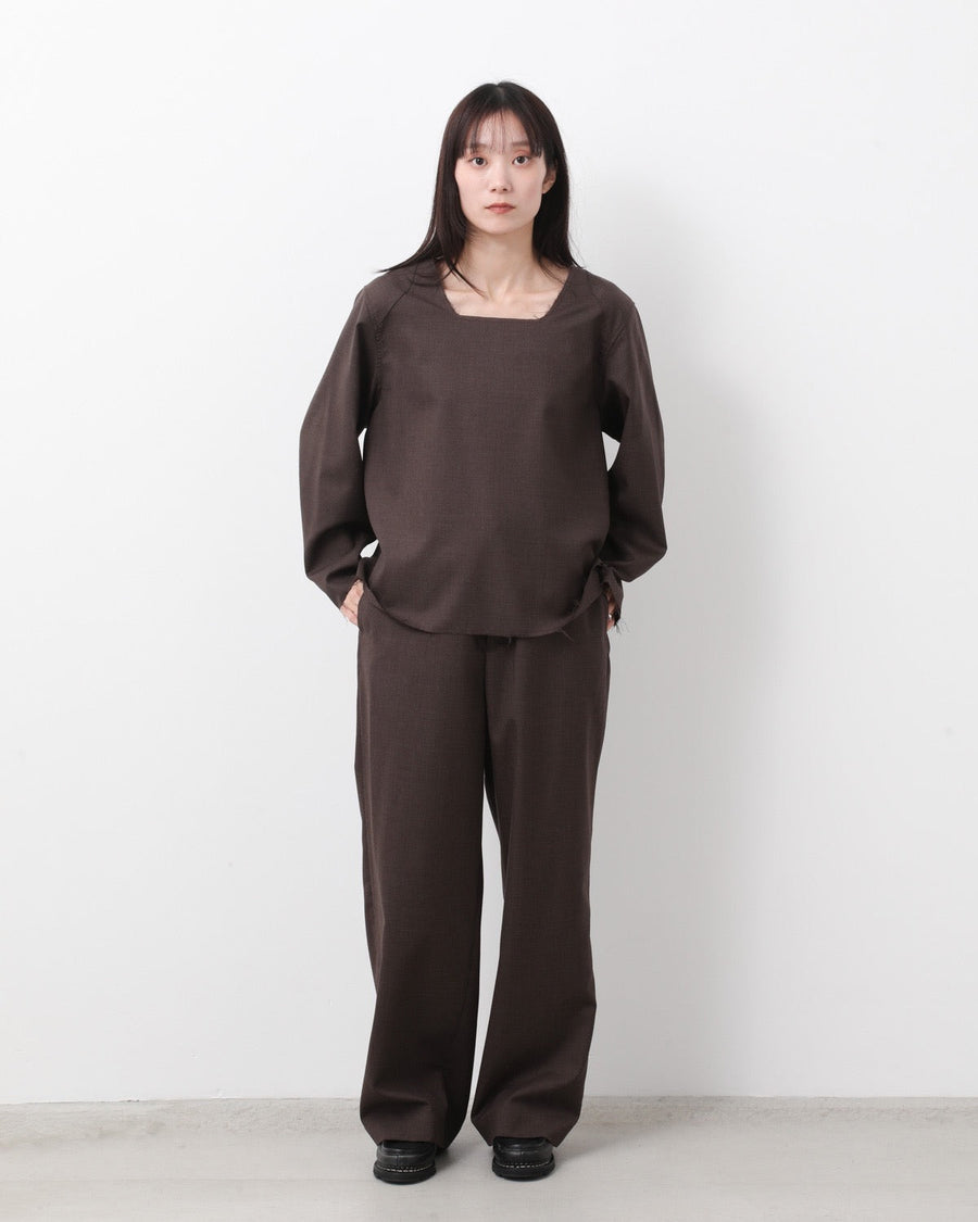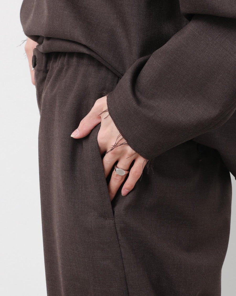 豪州産ウールの梳毛糸を使用したトロピカル生地で仕立てたイージーパンツです。