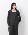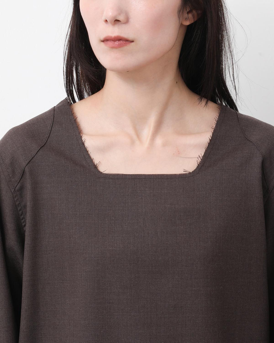 豪州産ウールの梳毛糸を使用したトロピカル生地のスクエアネックプルオーバーです。