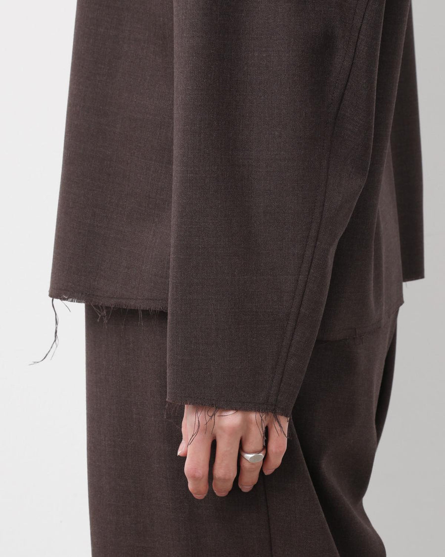 クリア仕上げによるさらりとしたタッチで、ウール混でありながらロングシーズン着用できる素材感です。